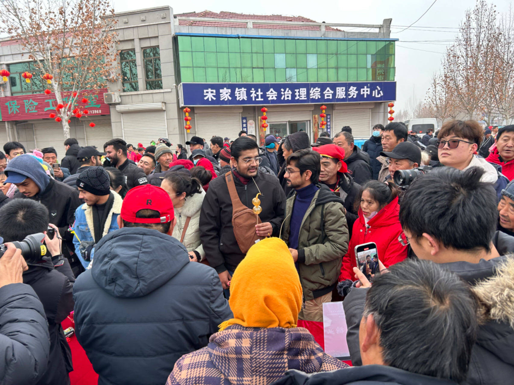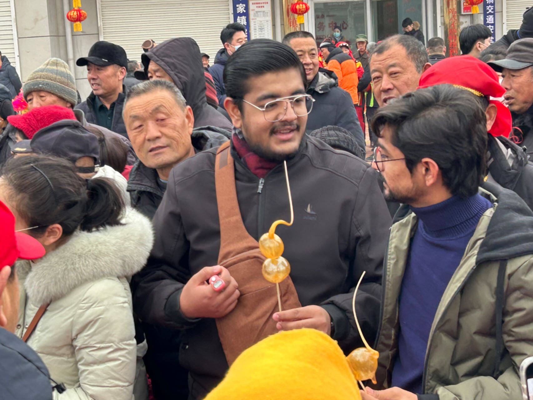 今天恰逢宋家大集,集市上展销了多种新鲜农副产品、新春节庆用品、手工制品等,不少群众前来赶年集、备年货。德州学院的外国留学生也来此观看演出、体验非遗、品尝特色美食,感受独具特色的中国年味。