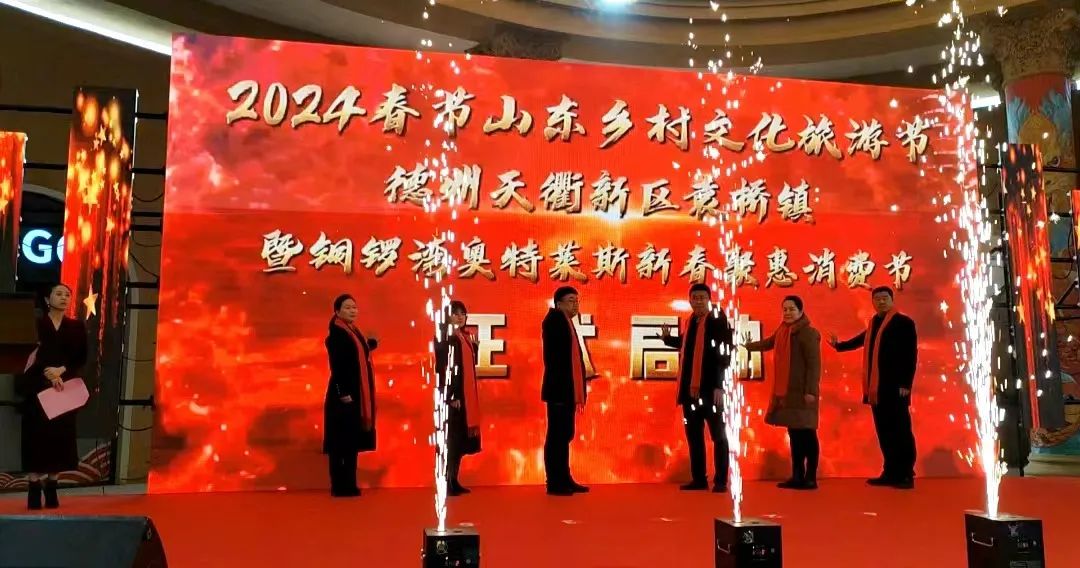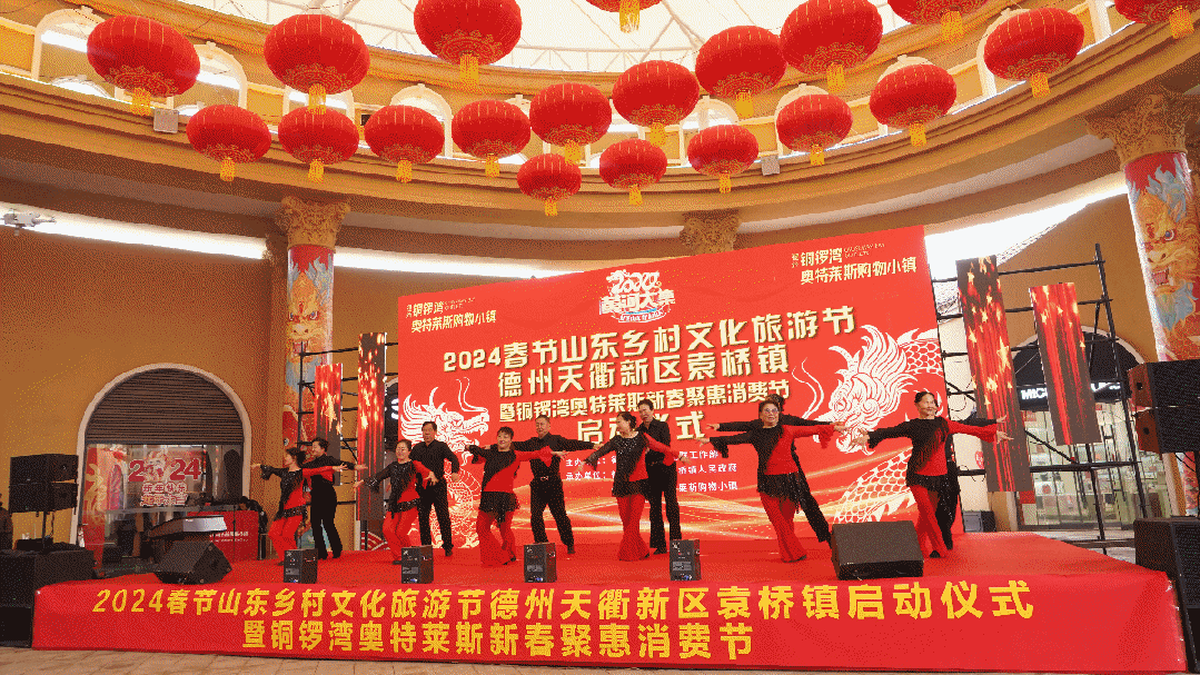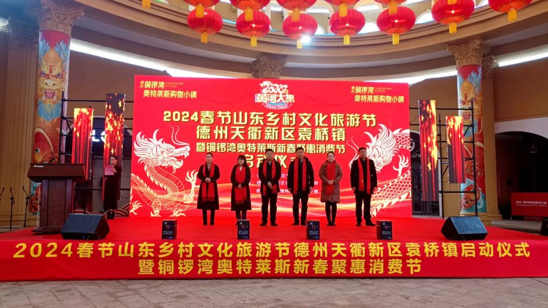 1月18日,2024春节山东乡村文化旅游节德州天衢新区袁桥镇暨铜锣湾奥特莱斯新春聚惠消费节启动仪式在铜锣湾奥特莱斯购物小镇举行。
