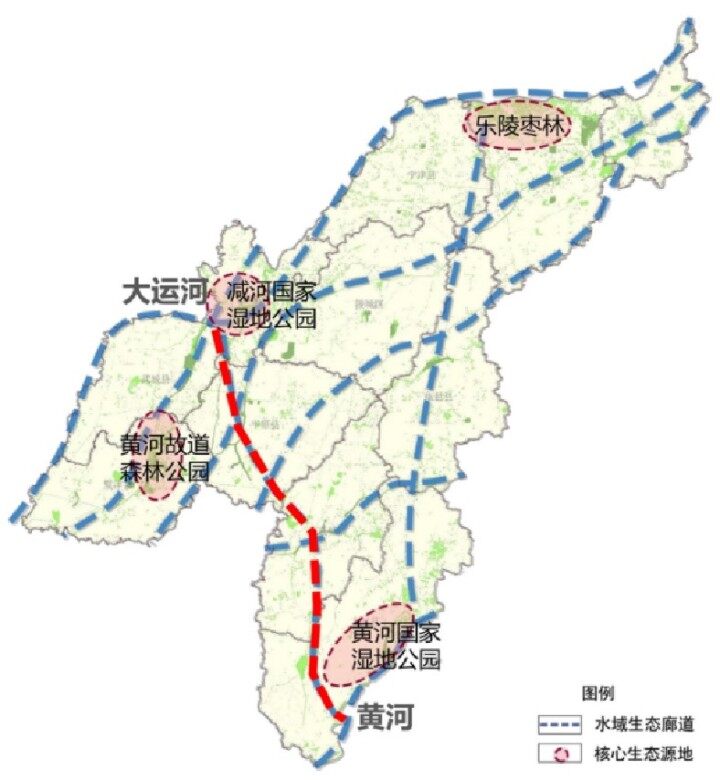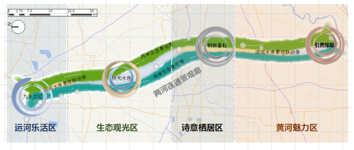 据介绍,两河连通廊道总体景观规划是德州市自然资源局委托上海同济城市规划设计研究院,通过充分挖掘黄河和大运河地域文化内涵,高水平编制而成,最终形成了以“蓝绿纽带、五彩长卷”为主题,全域“一廊四区多点”的总体景观结构。“一廊”指两河连通廊道,“四区”是运河乐活区、生态观光区、诗意栖居区和黄河魅力区等四大主题分区。“多点”即沿景观廊道的核心景观节点,包括四女寺水利枢纽、周寨沉沙池、武庄渡槽和齐河潘庄引黄渠入口等8个核心景观节点。