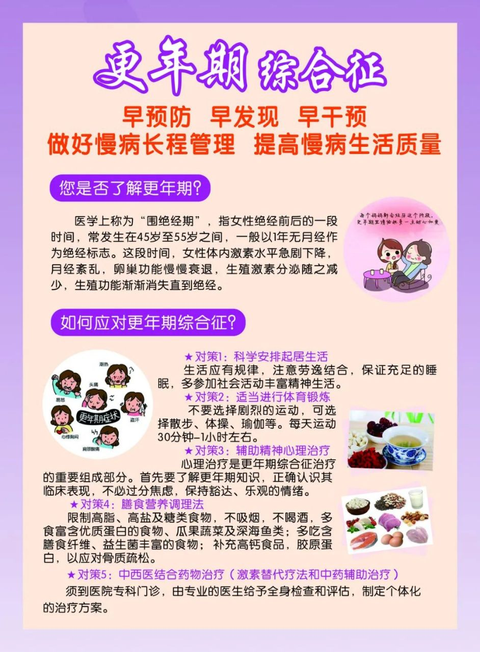 5、提供有关更年期营养、心理等方面的健康评估及指导;