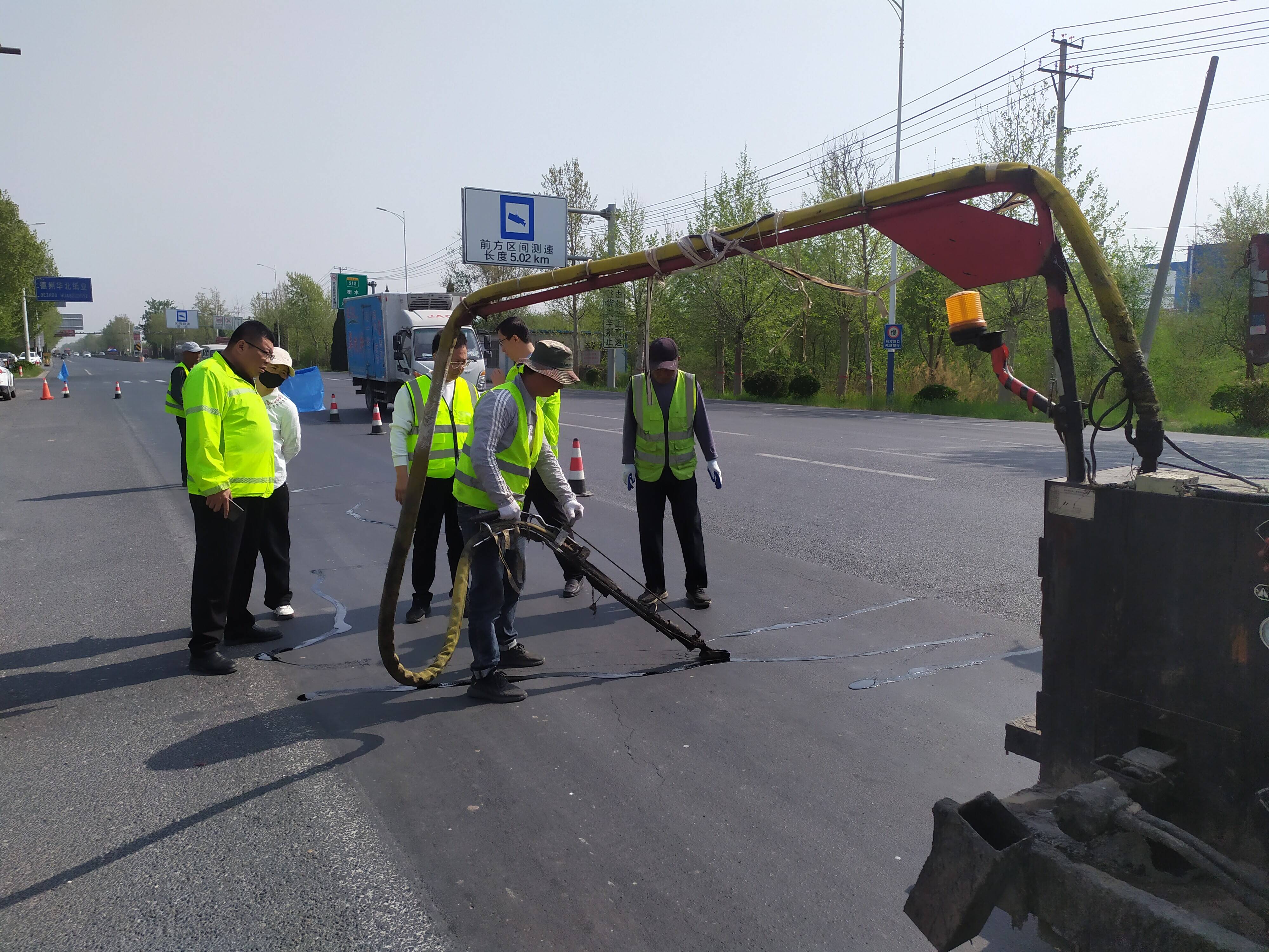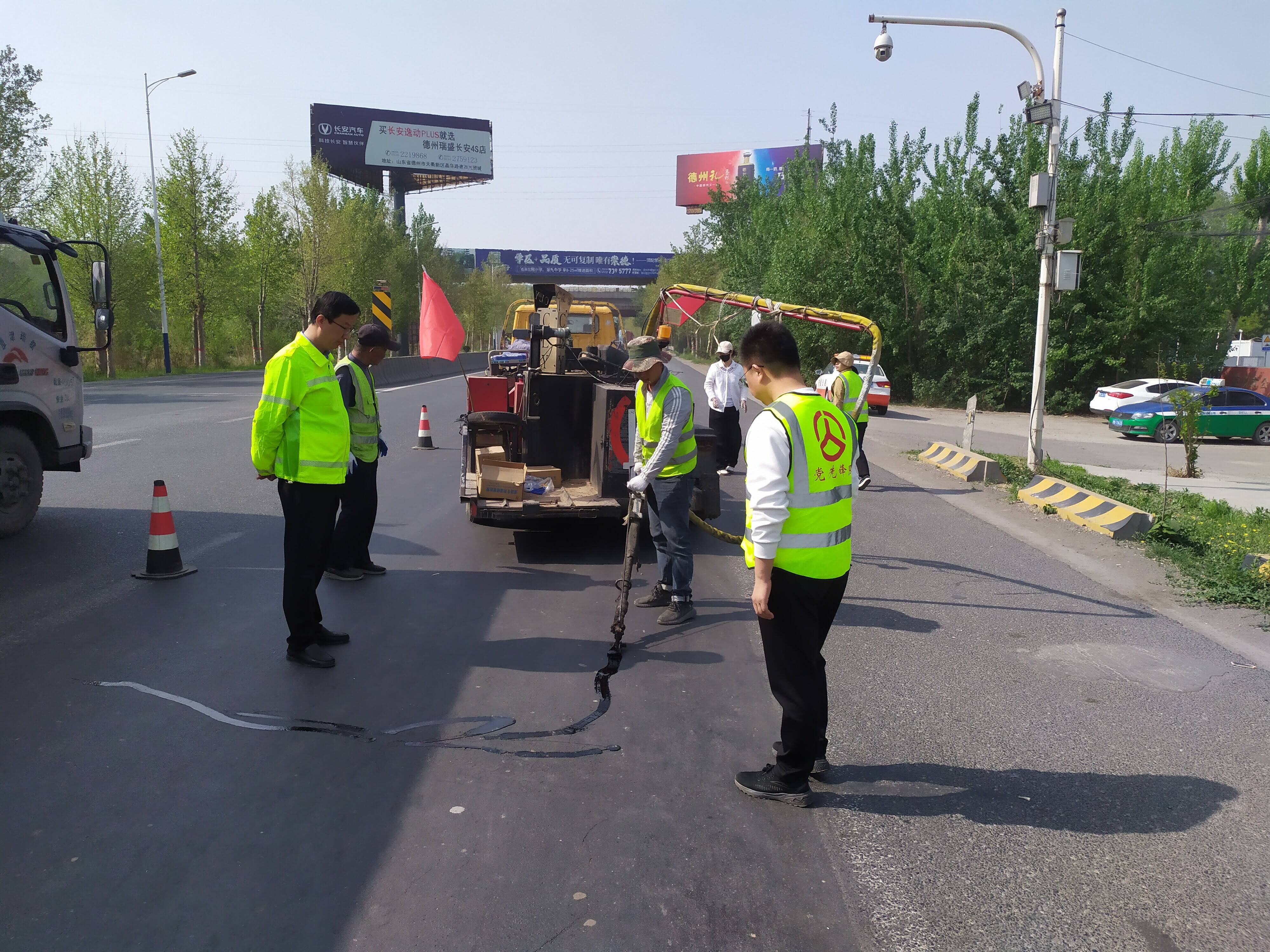大略网·奏嘛新闻4月17日讯 近日,德州市公路事业发展中心城区分中心抢抓春季养护“黄金期”,对辖区管养公路开展灌缝施工作业,切实做好管养公路路面预防性养护工作。