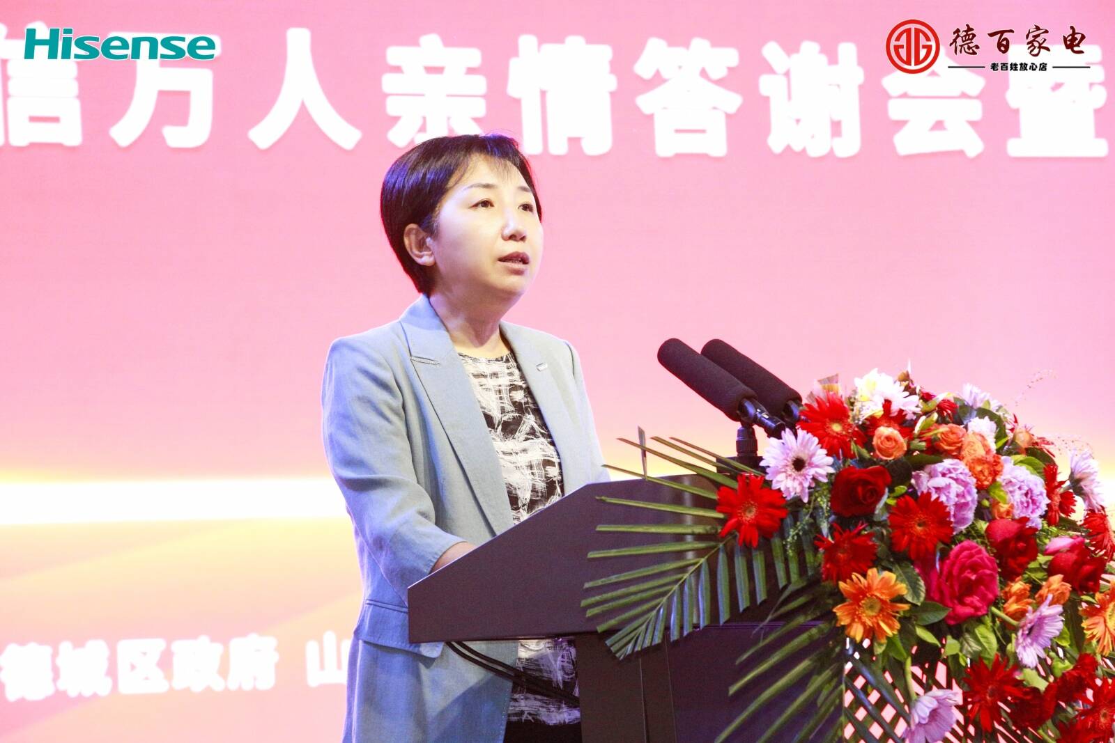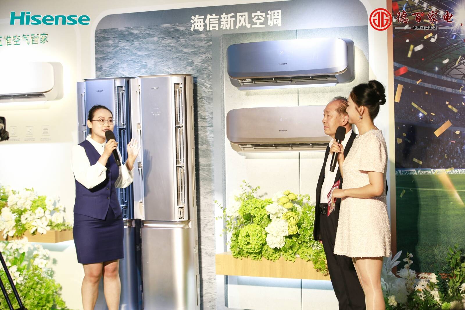 德州市商务局局长夏连红,德城区委常委、副区长刘桂芝,德城区商务局党组成员、德城区服务业发展中心主任刘峰,德州市广播电视台党委副书记马清水,德百集团董事长杨维星,海信中国区营销总部副总裁熊飞,山东省家用电器行业协会秘书长英成才,山东省家用电器行业协会副秘书长安强,德百集团执行总经理杨帅,德百集团总经理助理、家电公司总经理冯红梅等出席活动。