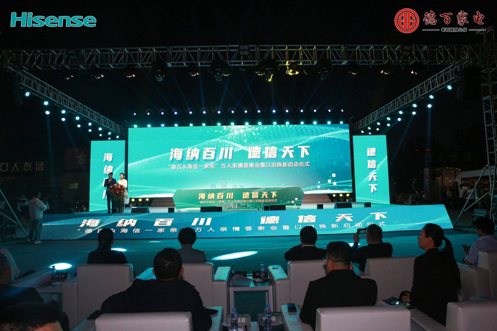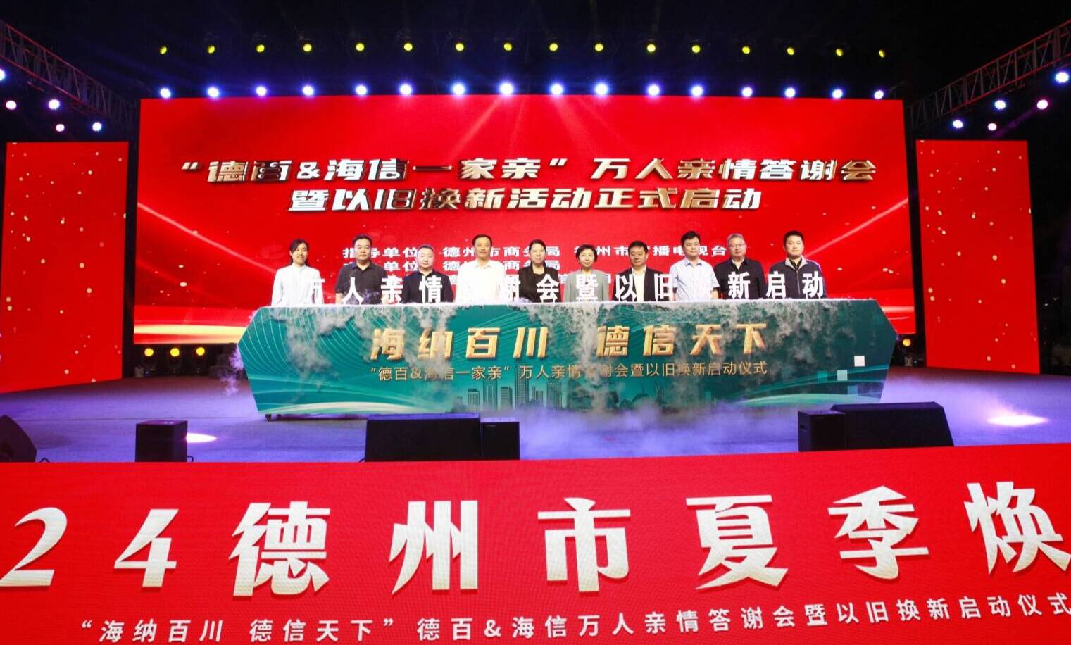 大略网·奏嘛新闻5月11日讯 5月11日晚,“德百·海信一家亲”万人亲情答谢会暨以旧换新启动仪式在德百大楼北广场举行。