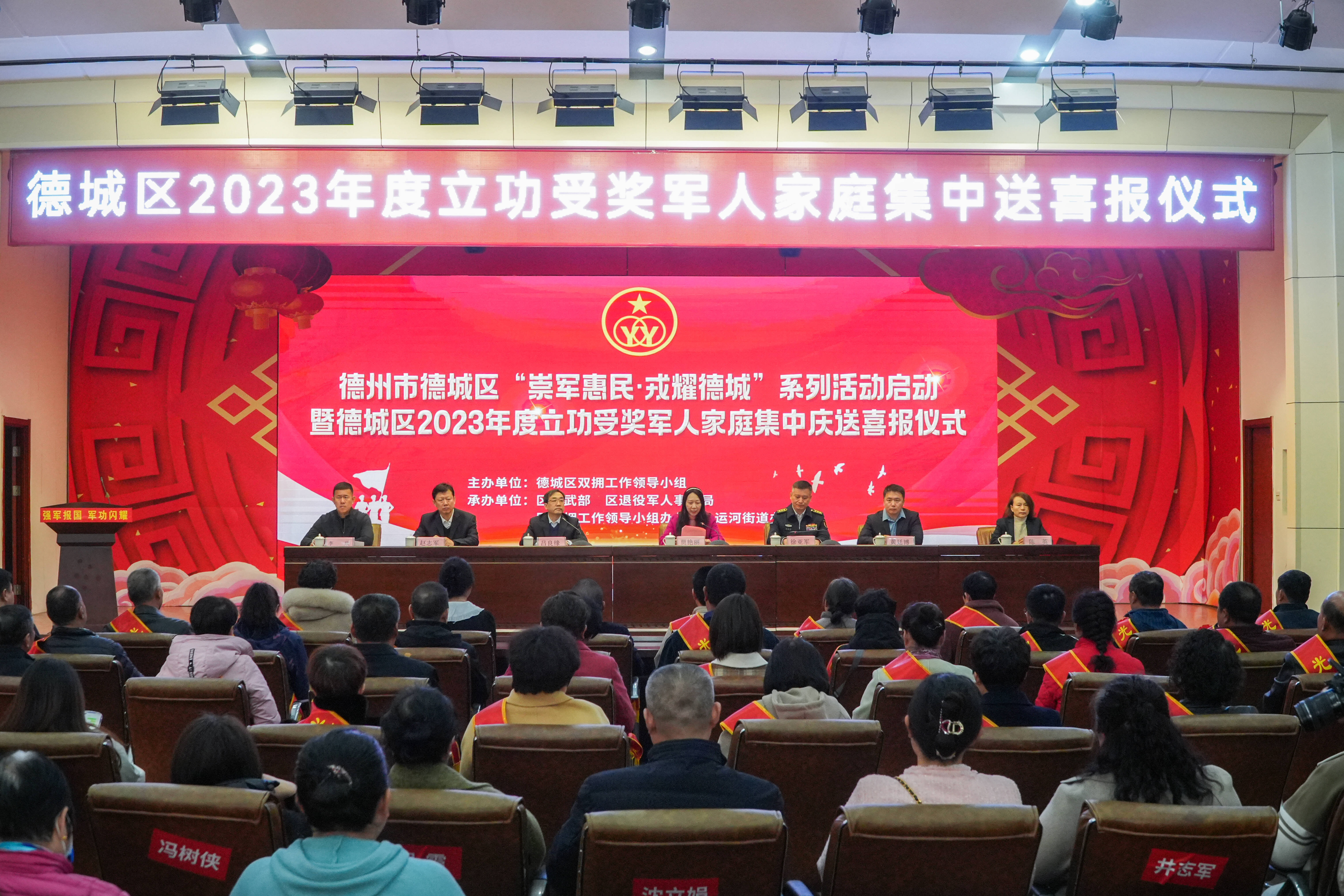 大略网·奏嘛新闻3月28日讯 军营创功绩,家乡传美名。3月28日上午,德城区为在2023年度立功受奖的51名“德城籍”军人家庭举办了集中送喜报仪式。