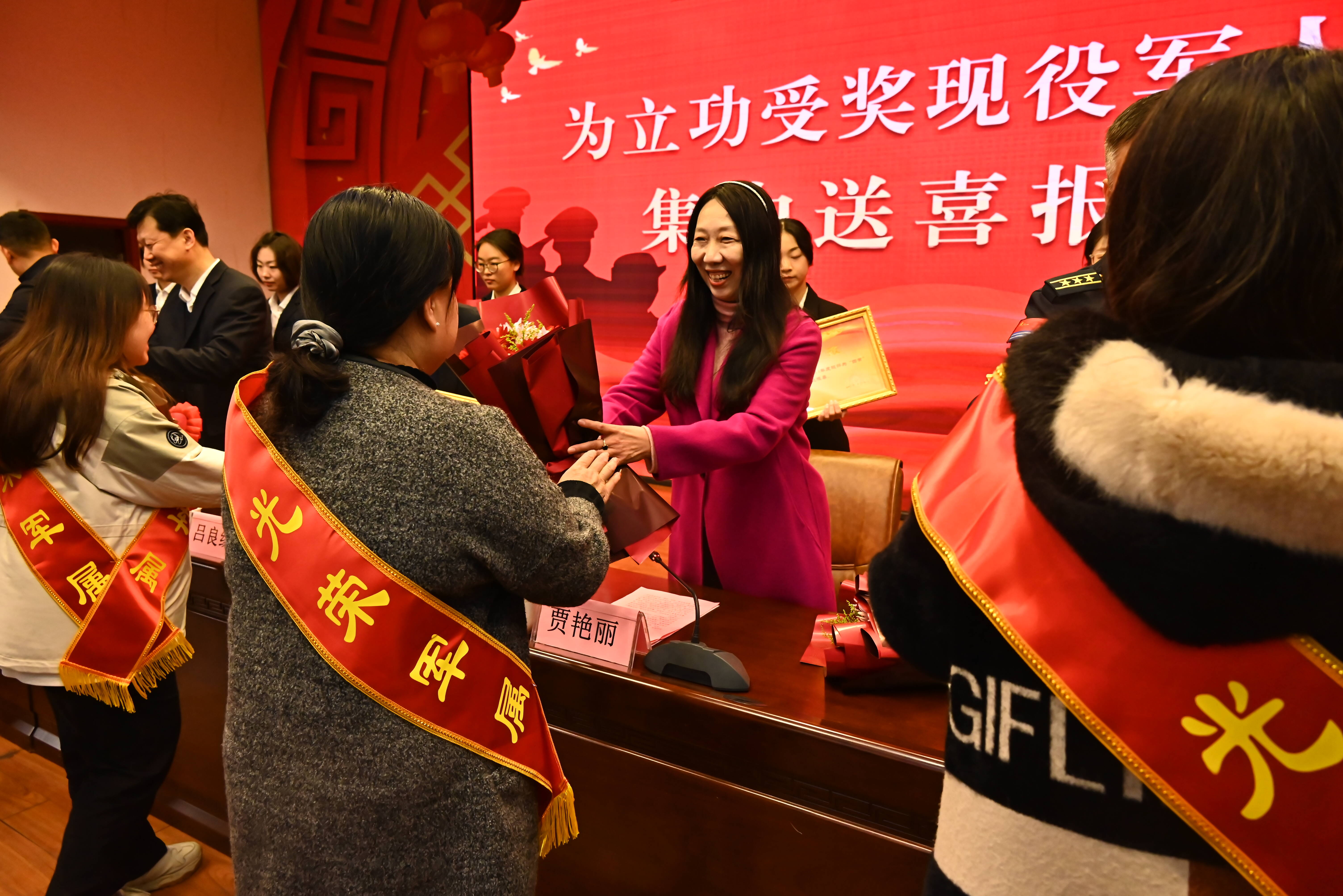 喜报名单中,程沐强等22人荣获三等功臣、蔡学宝等4人荣获“三级荣誉表彰”,姜传奇等25人荣获四有“优秀军官”和“优秀士兵”称号。一人立功全家光荣,德城区退役军人事务局工作人员将满载荣光的立功受奖喜报和鲜花送到51位军属手中,让军人军属共享这份荣耀和喜悦。