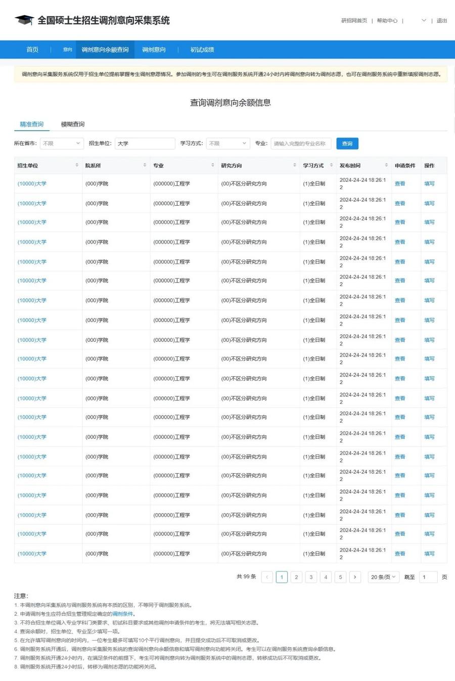 考生3月28日起,可进入调剂意向采集系统,了解招生单位发布的调剂意向余额情况,做好调剂准备。