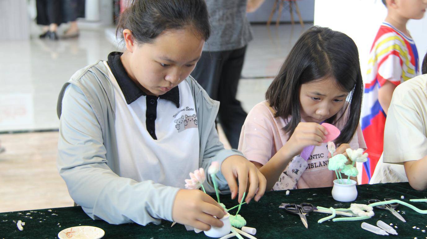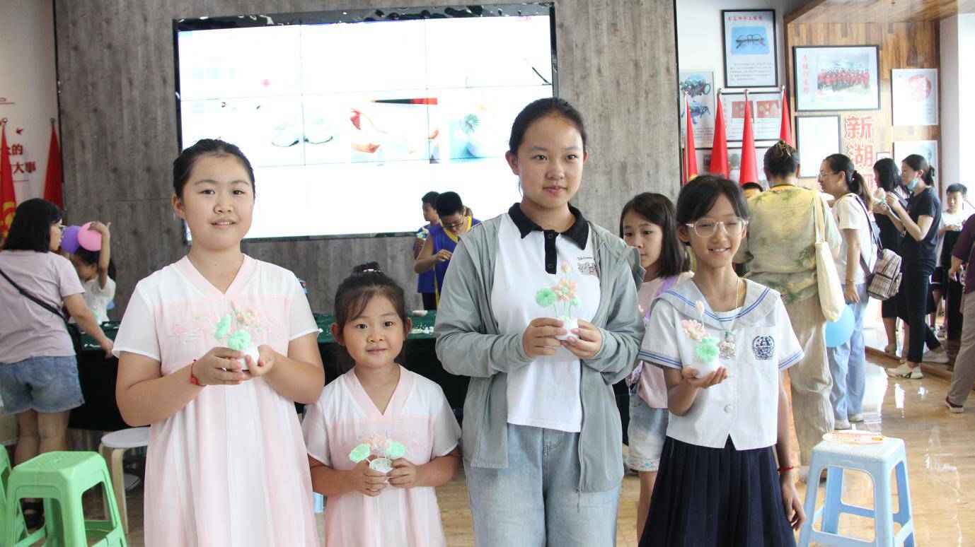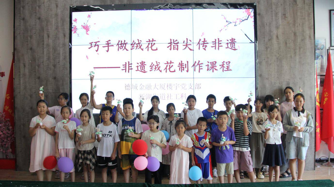大略网·奏嘛新闻8月16日讯 为深入推进党建引领基层治理建设,不断提升楼宇党支部活力,8月16日上午,新湖街道社会工作科联合德城金融大厦楼宇党支部在党群服务中心一楼大厅举办楼宇职工子女手工制作非遗绒花活动。
