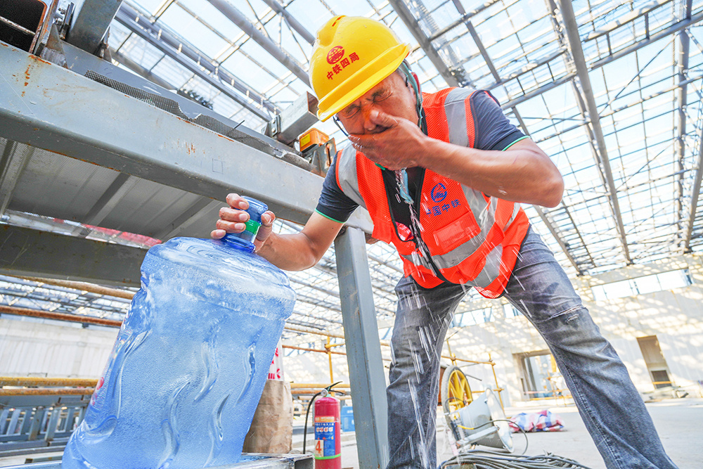 为保证工人身体健康,除了避开高温错峰施工,各项目部还发放足额防暑药品,适时提供西瓜、绿豆汤等为一线工人解暑降温。“虽然在赶工期,但我们一直遵守高温天气作业规定,气温达到一定温度,则会按规定停止作业,工人的健康是排在第一位的。”天衢博览广场一期项目分包负责人张子健说。(来源:德州日报)