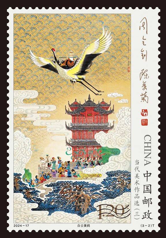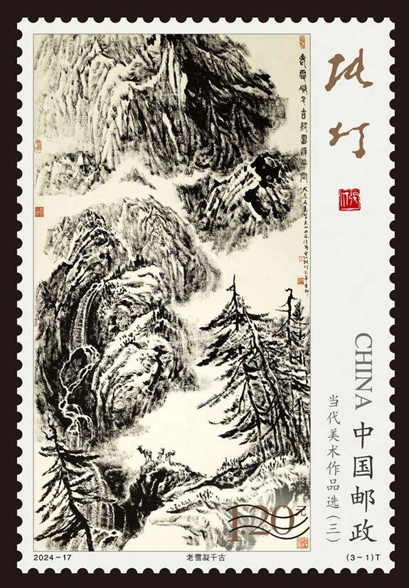 中国邮政定于2024年8月9日发行《当代美术作品选(三)》特种邮票1套3枚,邮票图案名称为老雪凝千古、白云黄鹤、我的祖国·我的人民。全套邮票面值3.60元。邮票计划发行数量为620万套。