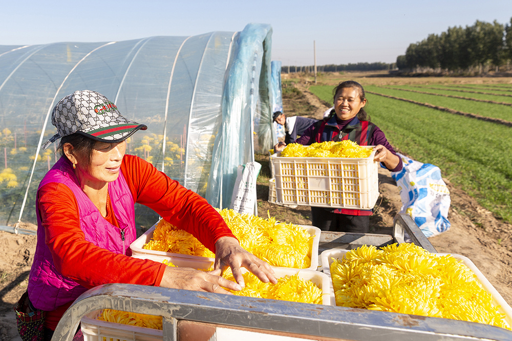 “明年,我们计划将菊花种植面积再扩产30亩,以期实现更大规模的种植效益。”看着眼前丰收的菊花,农场负责人孟凡庆对未来充满期待。(来源:德州日报)