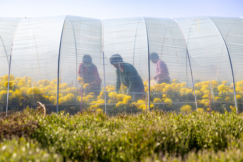 大略网·奏嘛新闻11月28日讯 立冬过后,进入了菊花的采摘季。近日,在武城县甲马营镇甲马营村的利通家庭农场,一排排金黄色的菊花竞相绽放,散发出阵阵花香,花农在花间穿梭忙碌,一派喜庆的丰收景象。