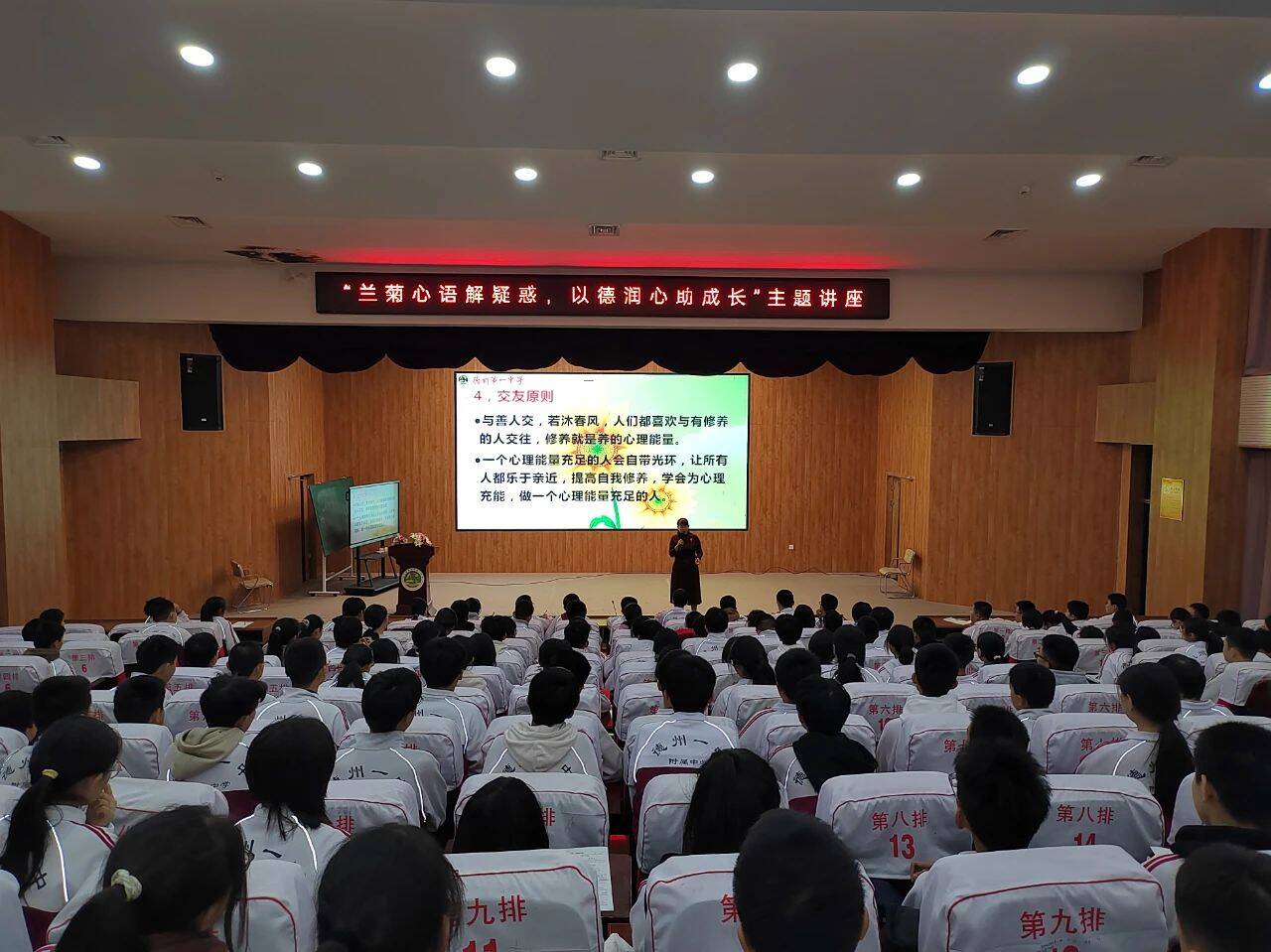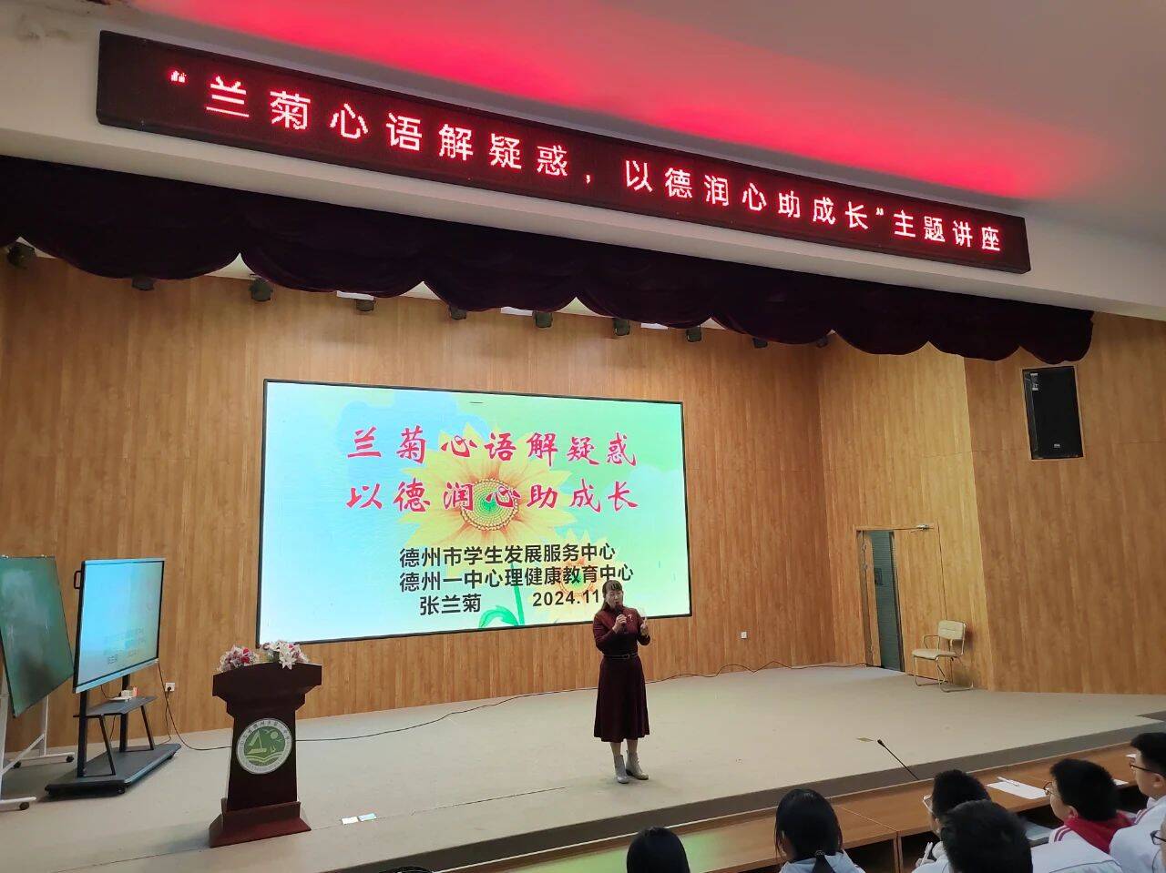 大略网·奏嘛新闻12月4日讯 为帮助学生解决青春期常见的困惑,提供实用的学习方法和技巧,助力他们健康成长,近日德州一中心理健康教育中心主任张兰菊在德州一中附属中学报告厅给初三学生进行了一场心理健康教育课。