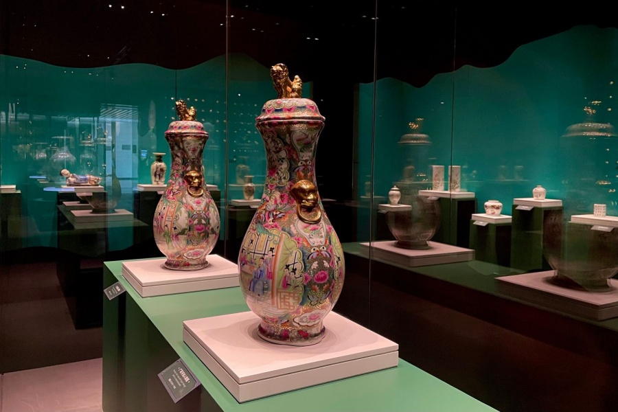 馆内精心收藏了从新石器时代至现代各个时期的陶瓷与琉璃艺术珍品,其中包括北魏时期的青釉莲花尊,战国时期的琉璃珠等稀有文物,以及象征着淄博陶瓷艺术巅峰的“五朵金花“——五大类创新研制的瓷器。