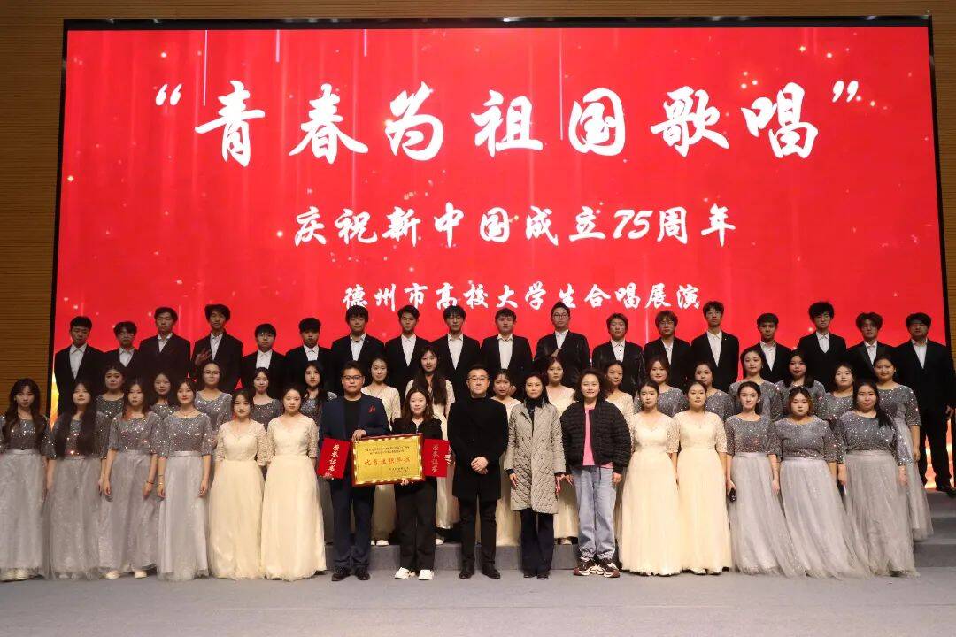 大略网·奏嘛新闻12月13日讯 12月11日,由共青团德州市委主办、德州职业技术学院承办,以“青春为祖国歌唱”为主题的德州市高校大学生合唱展演圆满落幕。活动旨在通过广大青年群体以歌声为载体,抒发对祖国的热爱与赞美之情,激发青年的爱国热情与民族自豪感。德州学院派出的两支合唱队伍凭借精湛的技艺与深情的演绎,在众多参赛队伍中脱颖而出,分别荣获一等奖第一名和一等奖第二名。