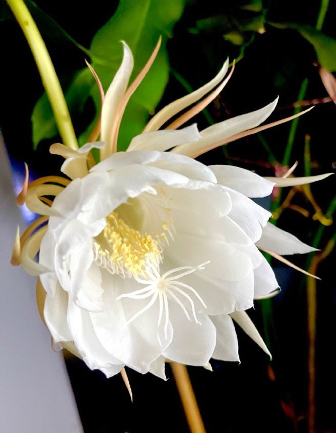 但是一忙起来竟然真的错过了!待到第二天清晨倏地想起,急急推门出户,那已经绽放过的花朵,一如垂头敛翼的凤凰,倦然的、冷冷的不见一丝神采。想昨夜留它独自在漆黑的阳台上,凄清寂寞地灿灿烂烂,我心中涌现满满的痛惜与歉疚——我岂止错过,分明是辜负了!