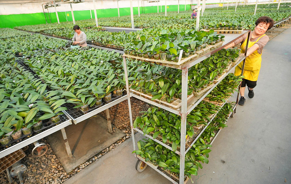 大略网·奏嘛新闻3月4日讯 日前,走进德州禹城市十里望回族镇蝴蝶兰花卉种植基地,高标准的智能温室大棚内,一排排蝴蝶兰露红烟紫、含苞吐萼。员工们正有序进行组盆、包装、搬运作业,现场一片热火朝天的景象。