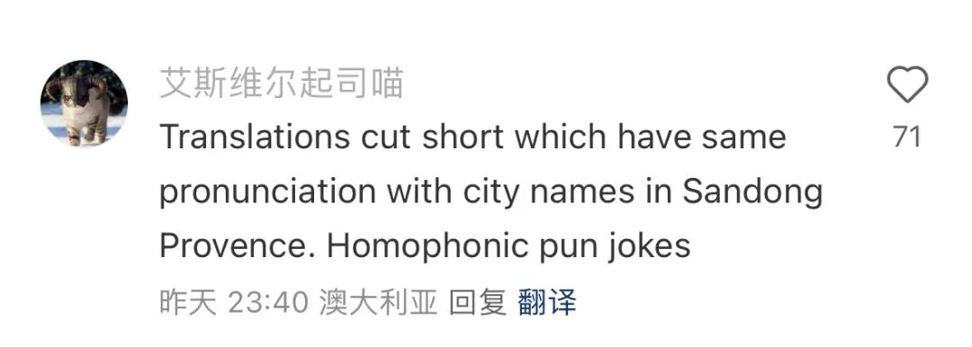 澳大利亚网友表示“双关语”