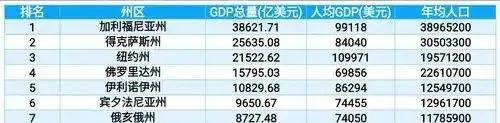 根据2023年美国发布的各州GDP数据来看