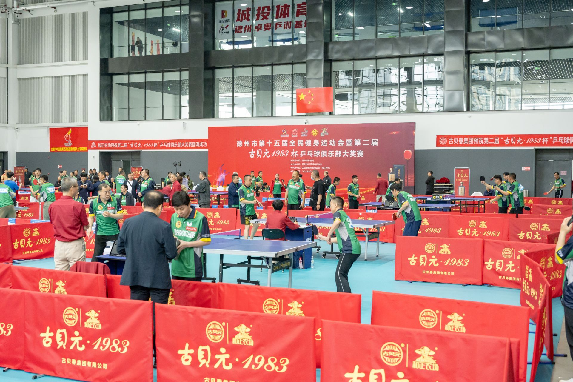 大略网·奏嘛新闻5月10日讯 5月9日,德州市第十五届全民健身运动会暨第二届“古贝元1983”杯乒乓球俱乐部大奖赛在德州市体育公园体育展览馆开幕。