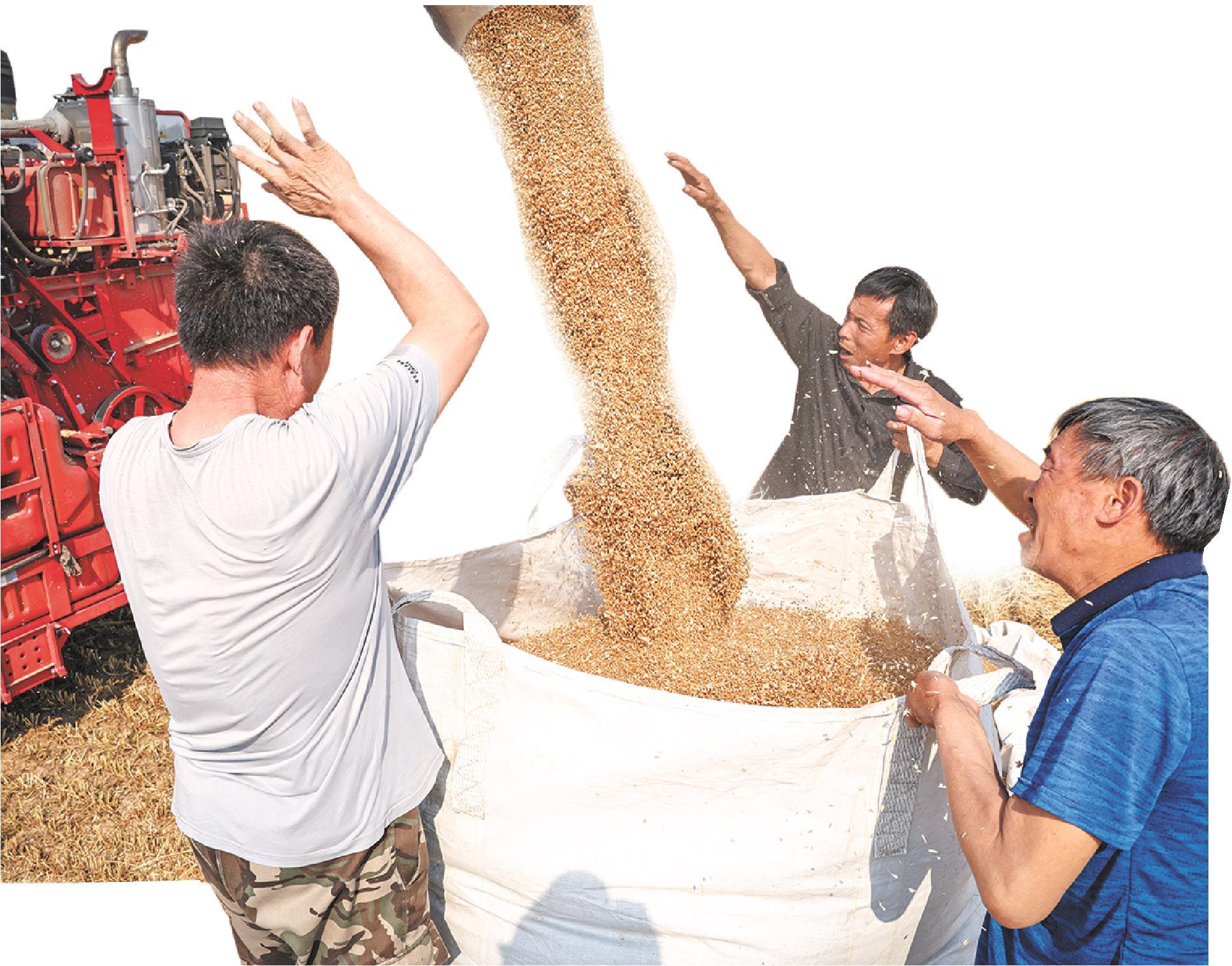 麦子丰收,装满了大包。