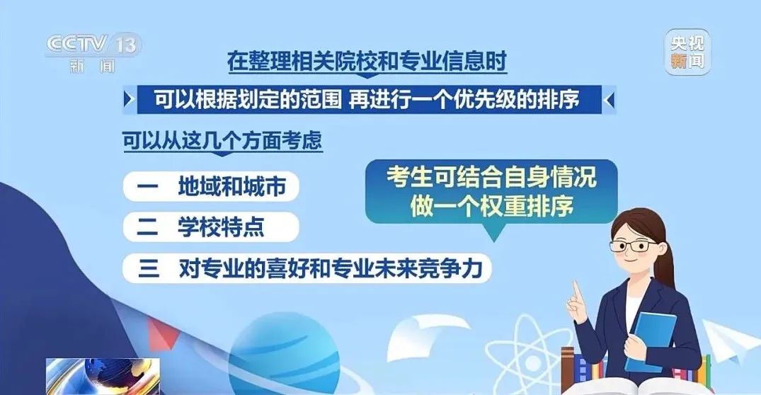 在整理相关院校和专业信息时,可以根据划定的范围,再进行优先级的排序,专家建议可以从以下3个方面考虑——