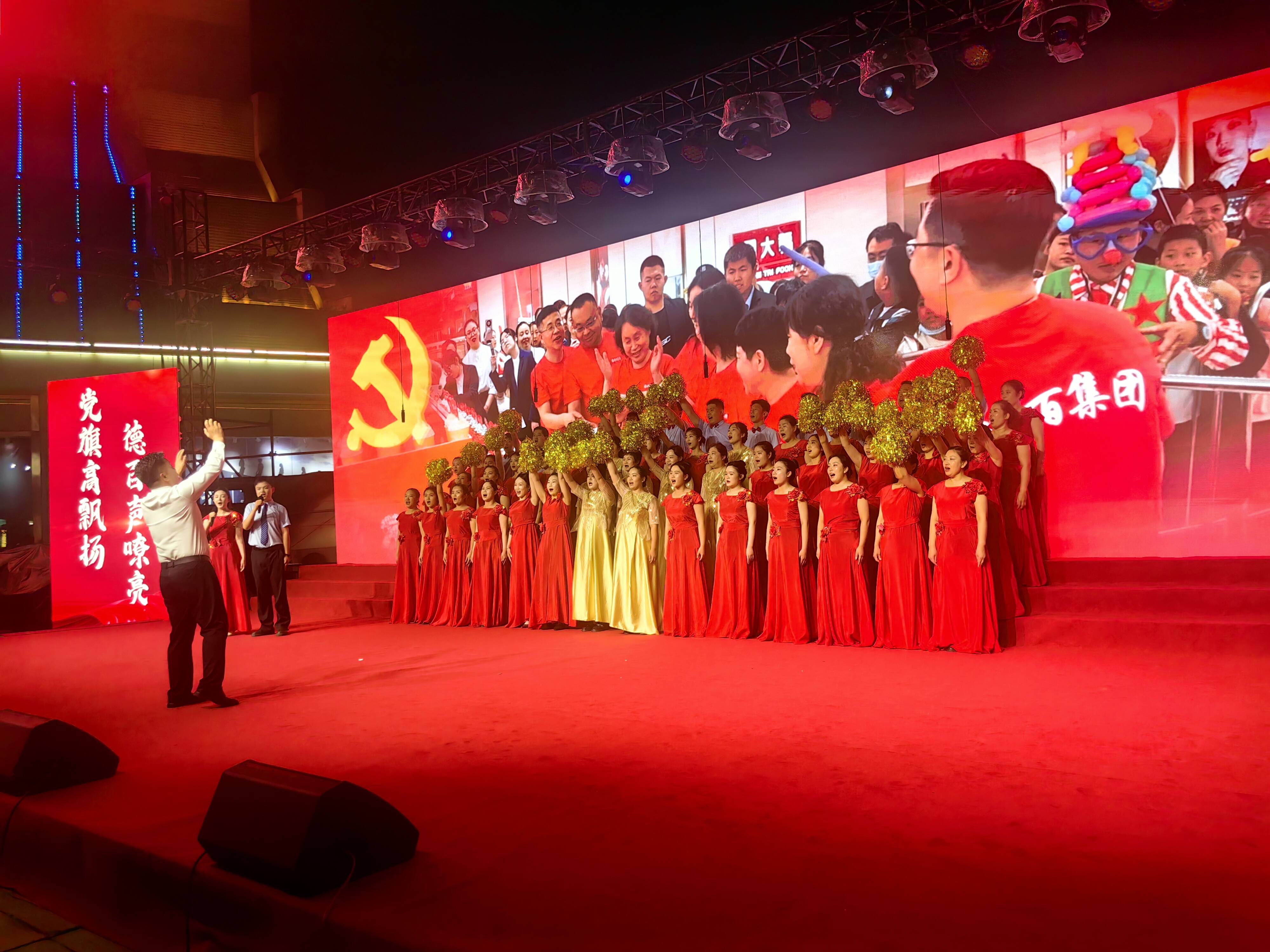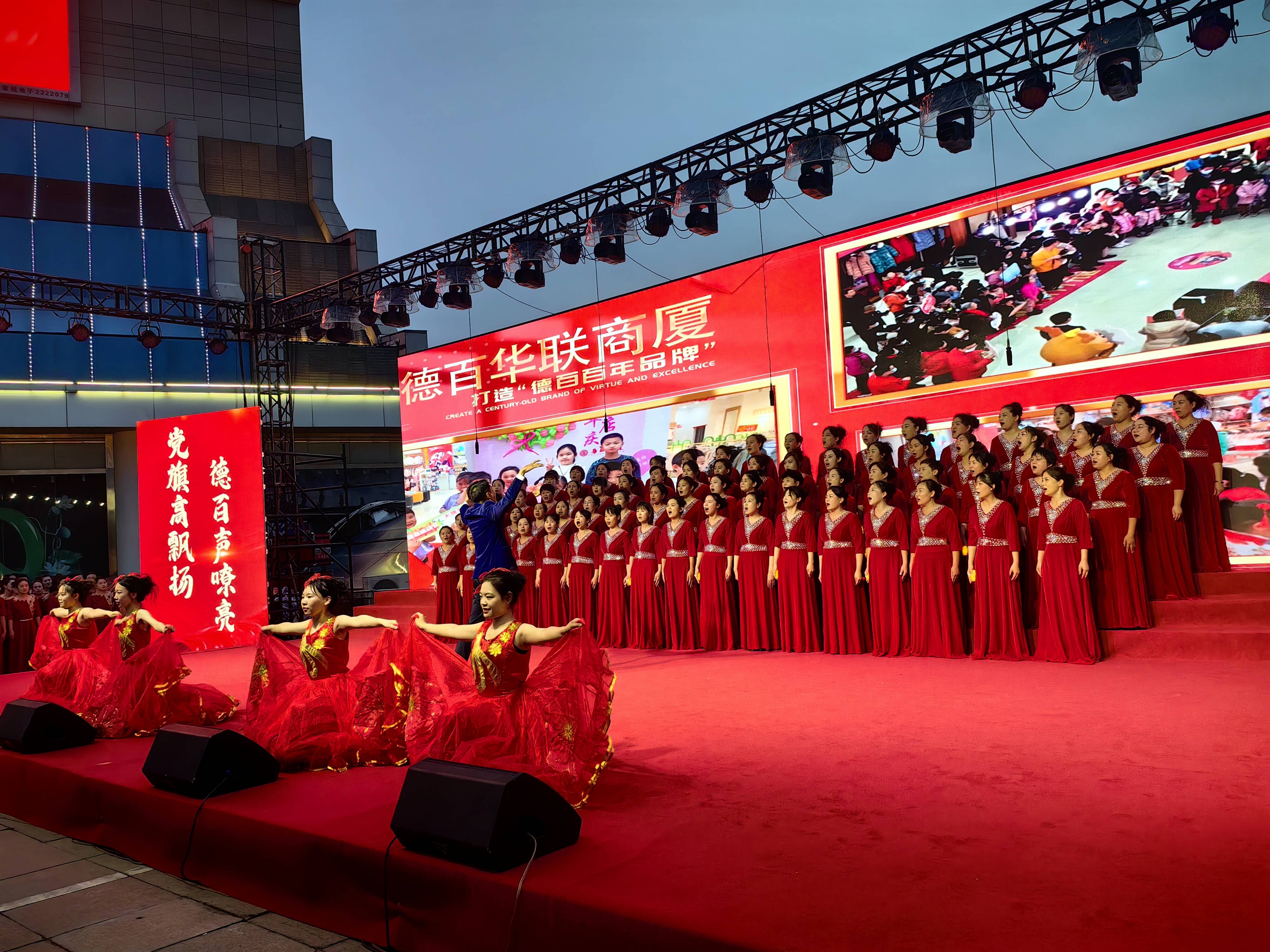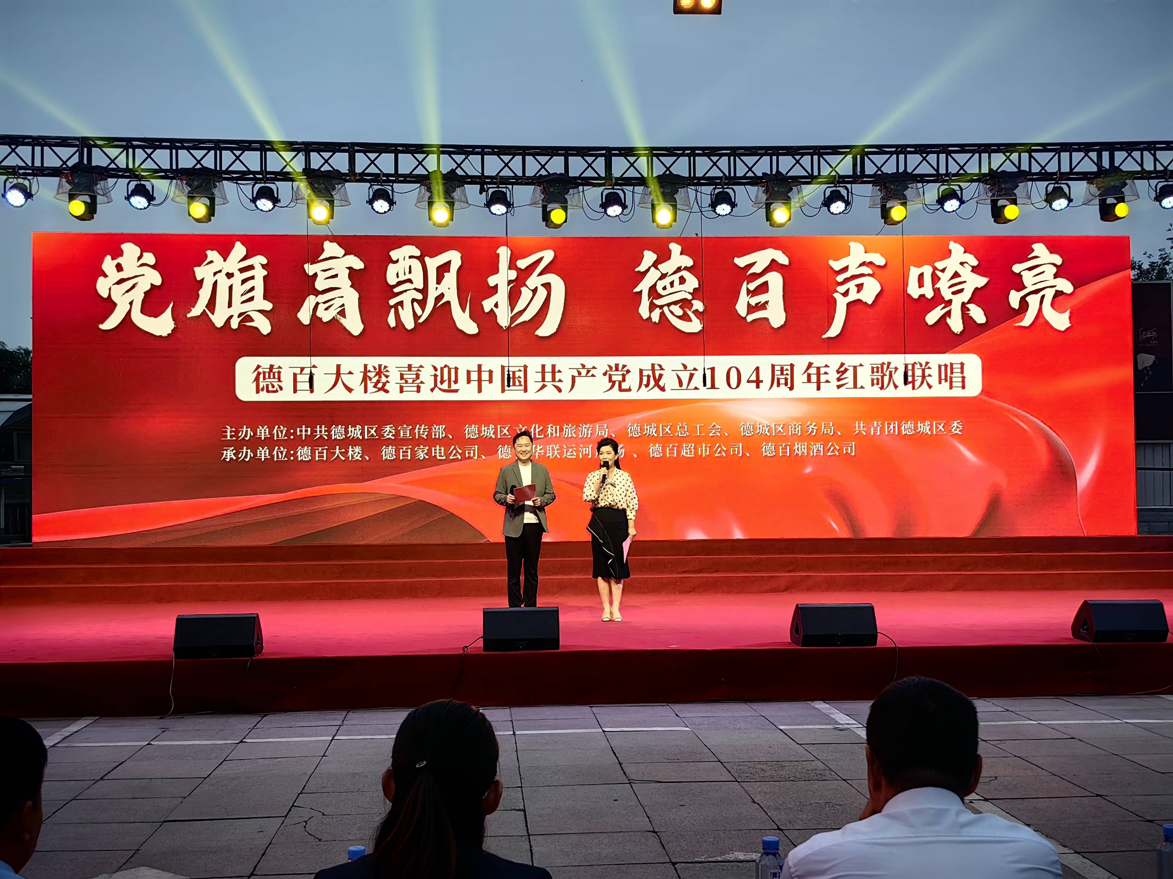 6月26日晚,“党旗高飘扬 德百声嘹亮”——德百集团2025首场迎“七·一”红歌汇演在德百大楼北广场隆重举行。