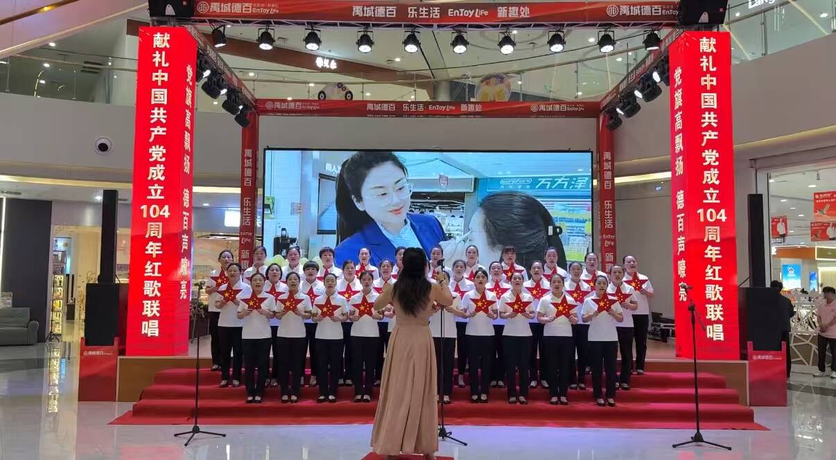 为热烈庆祝中国共产党成立104周年,德百集团党委组织“党旗高飘扬 德百声嘹亮”红歌联唱活动。本次活动规模盛大,将在4天内举办9场演出,来自集团18家下属单位的70余支演唱队伍、超过6000名员工参与汇演联唱。德百人将以激昂的旋律和嘹亮的歌声,抒发对党的无限热爱与深情祝福。