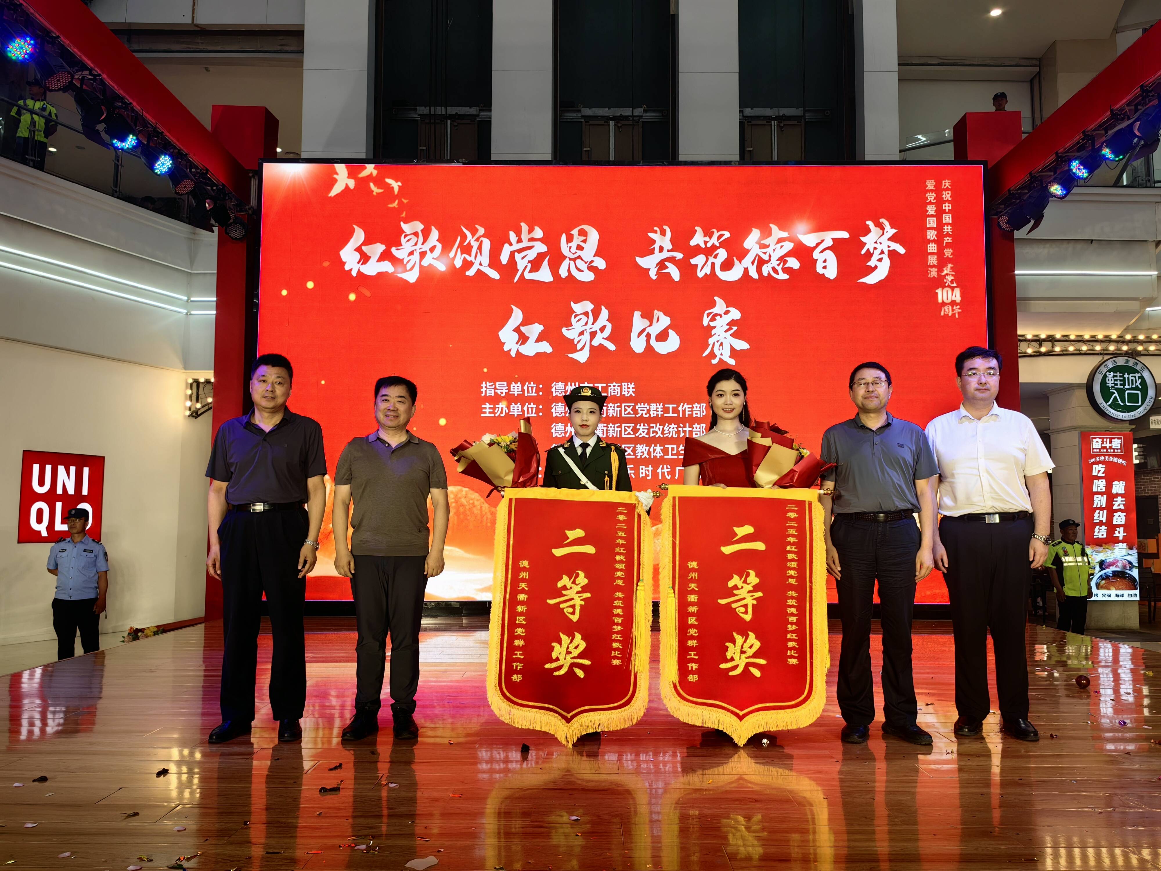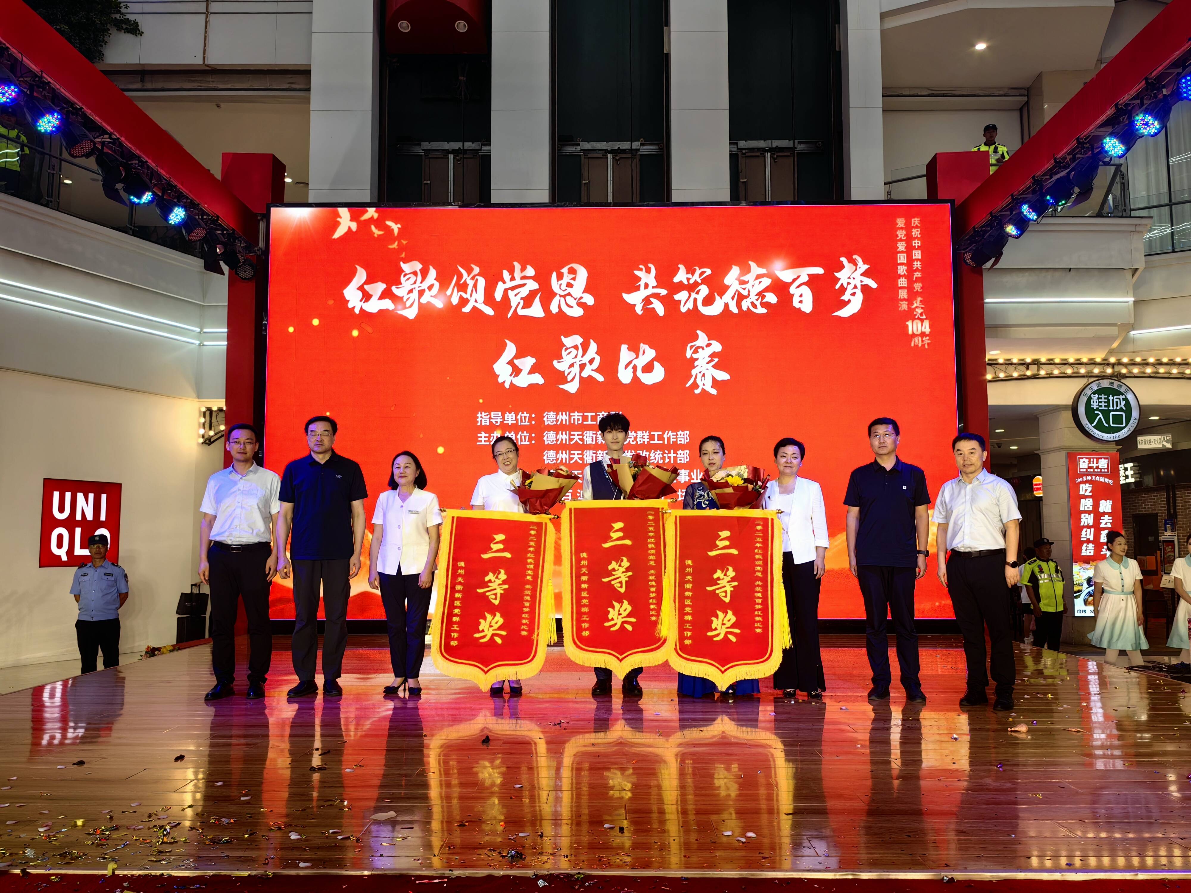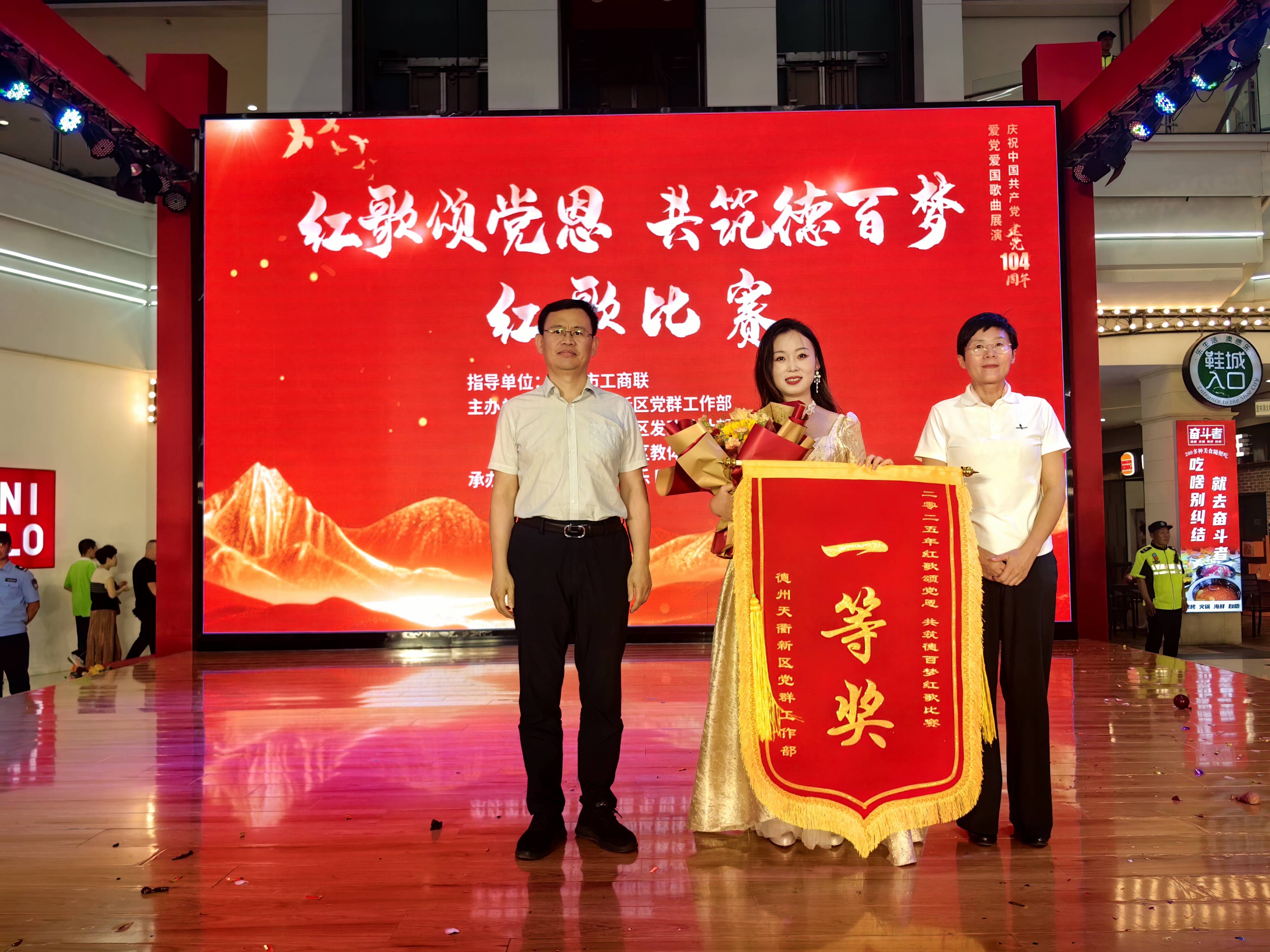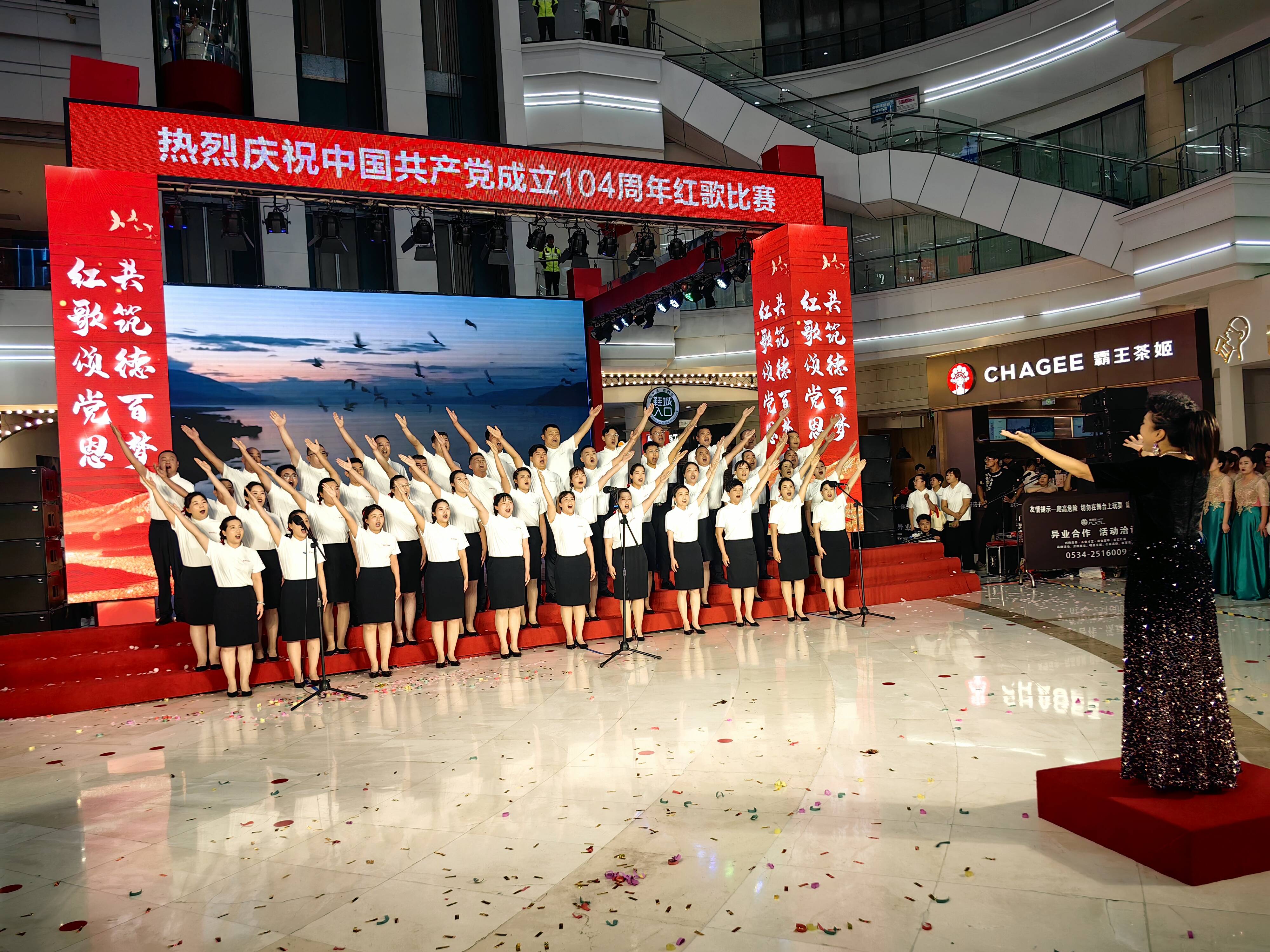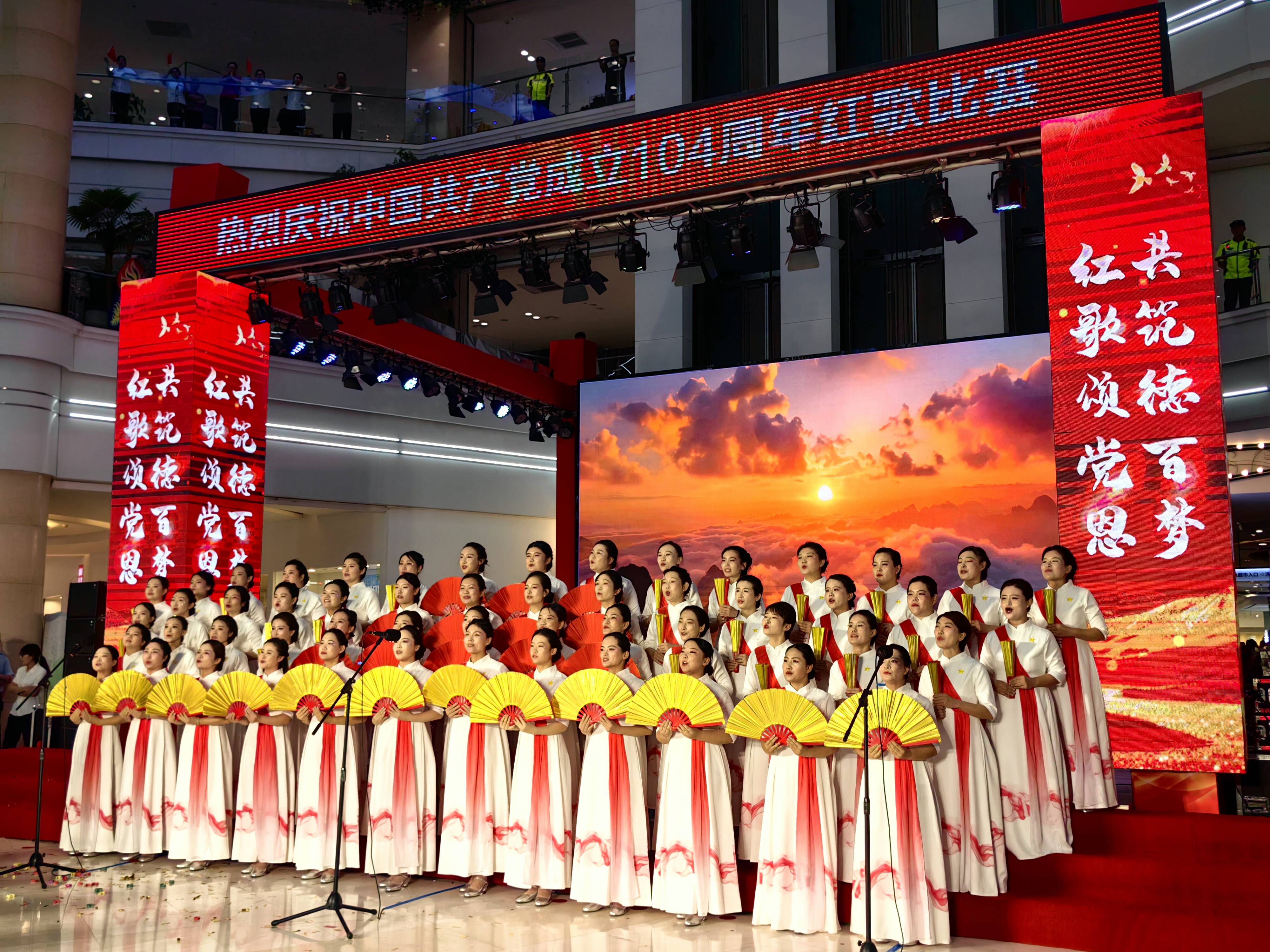 大略网·奏嘛新闻6月27日讯 6月27日晚,为庆祝中国共产党成立104周年,澳德乐时代广场开展了“红歌颂党恩 共筑德百梦”红歌展演活动。