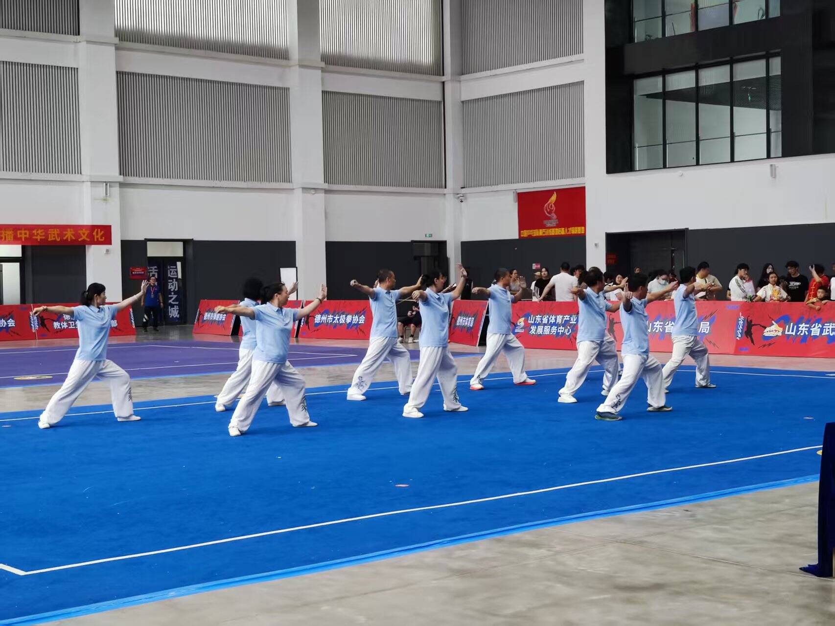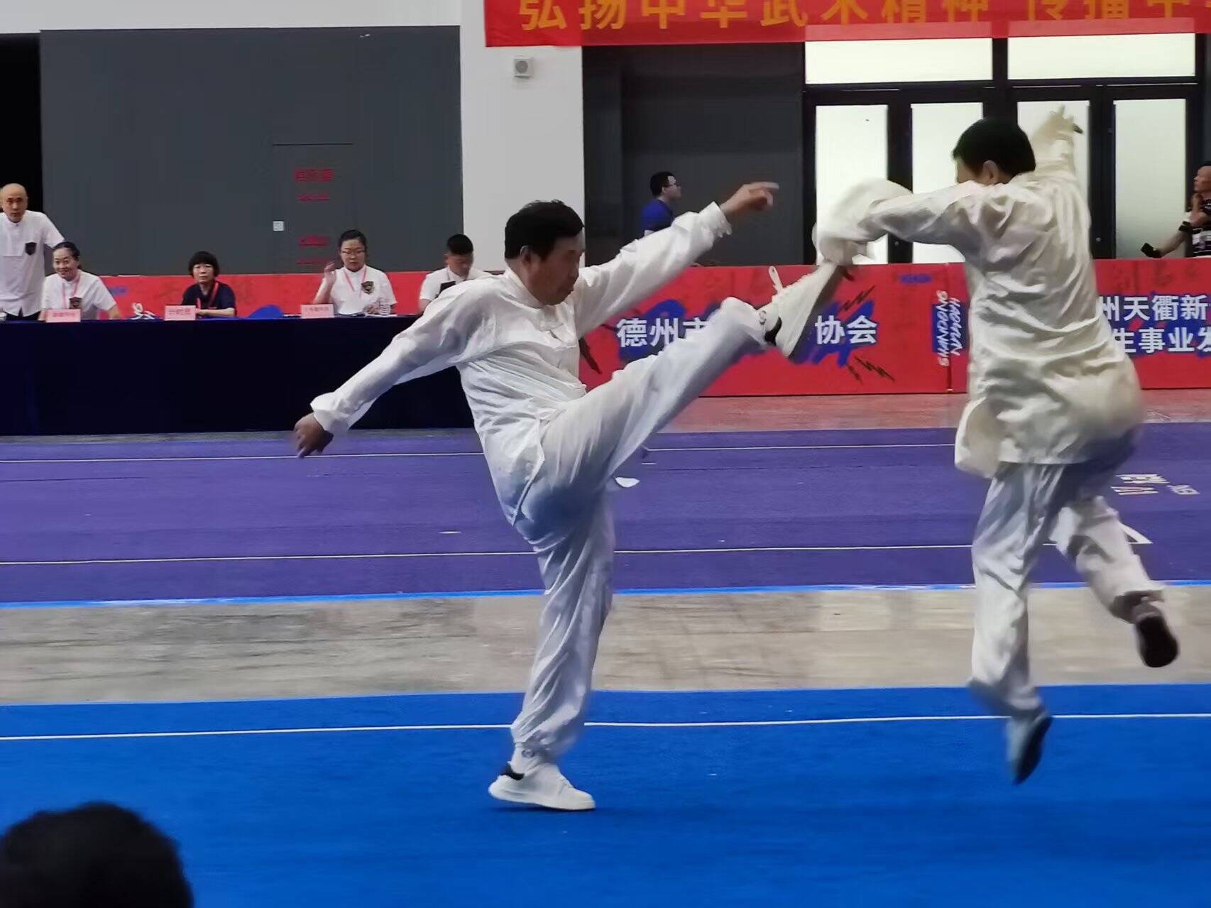 作为德州非物质文化遗产重要代表,王成太极拳的第二代传承人蔡文晓等进行展演,其独特的“松沉劲”与“缠丝劲”技法,将太极阴阳相生的哲学智慧演绎得淋漓尽致。王成太极弟子在太极对练、太极剑、太极刀、太极套路等项目上获一等奖。