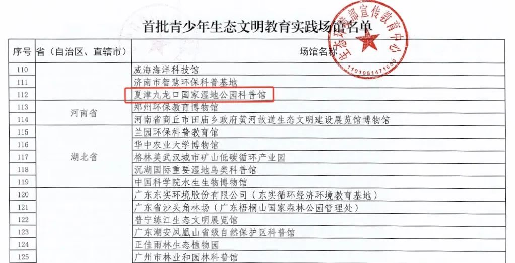 大略网·奏嘛新闻5月15日讯 近日,生态环境部宣传教育中心公布首批青少年生态文明教育实践场馆名单,夏津九龙口国家湿地公园科普馆成功入选。