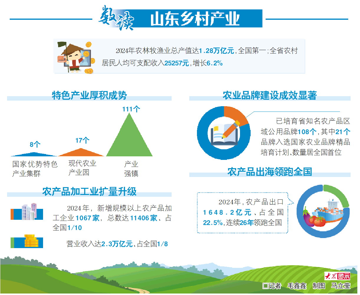 向着进一步提升农业、繁荣农村、富裕农民的更高目标,山东聚焦重点产业,聚集资源要素,培育发展动能,构建具有山东特色的乡村富民产业体系,力争到2027年,乡村富民产业蓬勃发展,带动农民经营性收入和工资性收入显著提高,日子“芝麻开花节节高”。