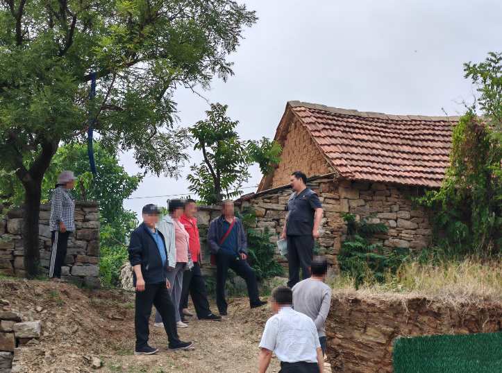 东里法庭法官进村了解案情,查看现场。(资料片)