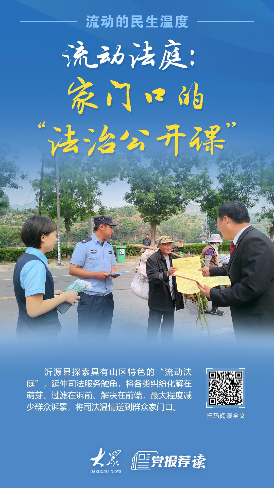 沂源县总面积1636平方公里,全县有名的山头1983座,是典型的山区县。“我们探索具有山区特色的‘流动法庭’,延伸司法服务触角,将各类纠纷化解在萌芽、过滤在诉前、解决在前端,最大程度减少群众诉累,将司法温情送到群众家门口。”东里法庭负责人齐元林介绍。