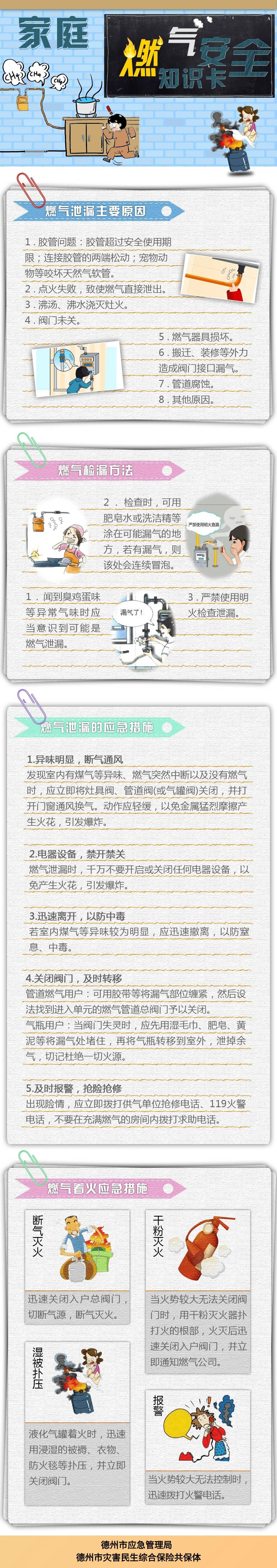 在此,德州市应急管理局、德州市灾害民生综合保险共保体提醒您:若已确认燃气发生泄漏,这时请严格遵循以下要求:不要出现明火!不要开关任何电器!不要打电话!不要按门铃!这些举动极易产生小火花,从而引发燃气爆炸,千万要牢记!