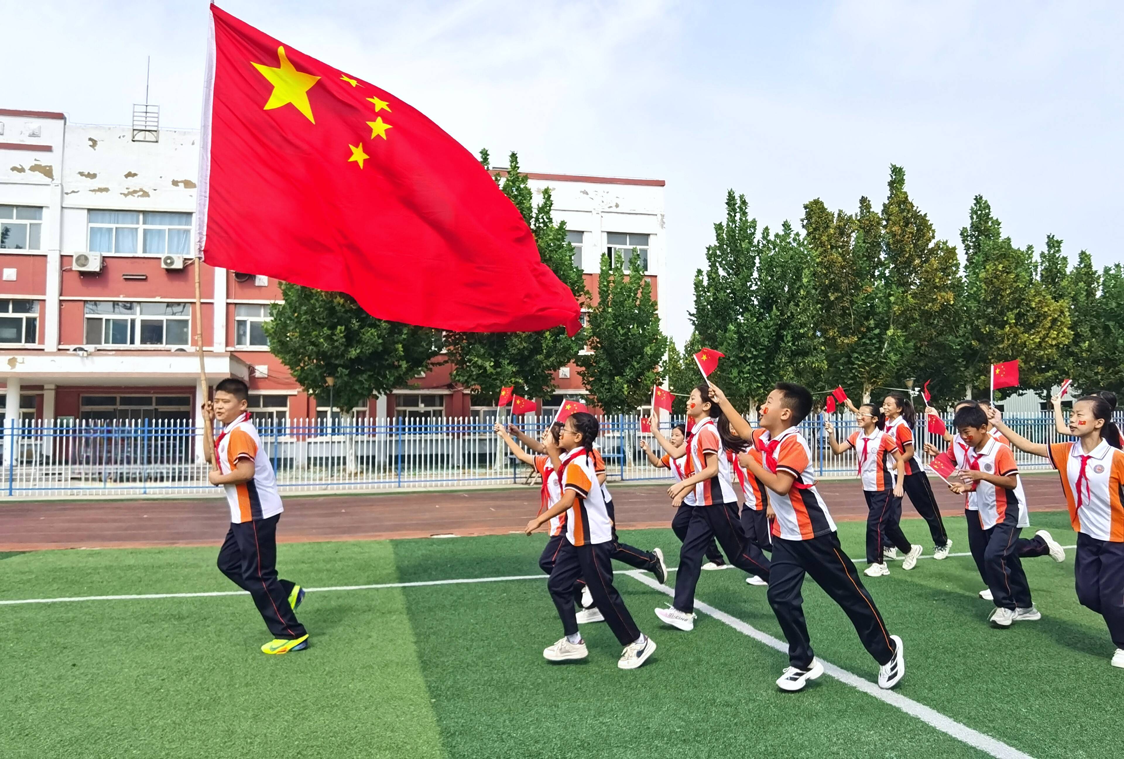 操场上,几百名学生身着统一服装,拼写出巨大的“中国”字样和数字“76”。孩子们激情澎湃地集体朗诵《少年中国说》,“少年智则国智,少年富则国富,少年强则国强……”这熟悉的青春誓言再次响彻校园,奏响“强国有我”的时代强音。
