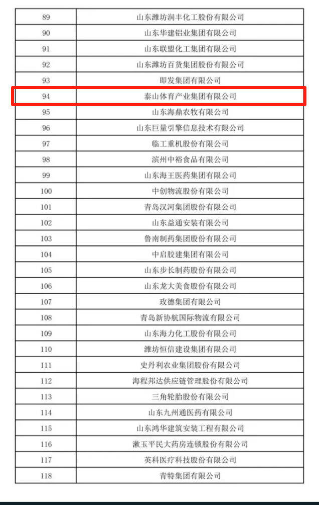 大略网·奏嘛新闻8月13日讯 8月11日,2025年山东省民营企业200强榜单正式揭晓,泰山体育产业集团凭借其全产业链优势和卓越的行业贡献成功入围。