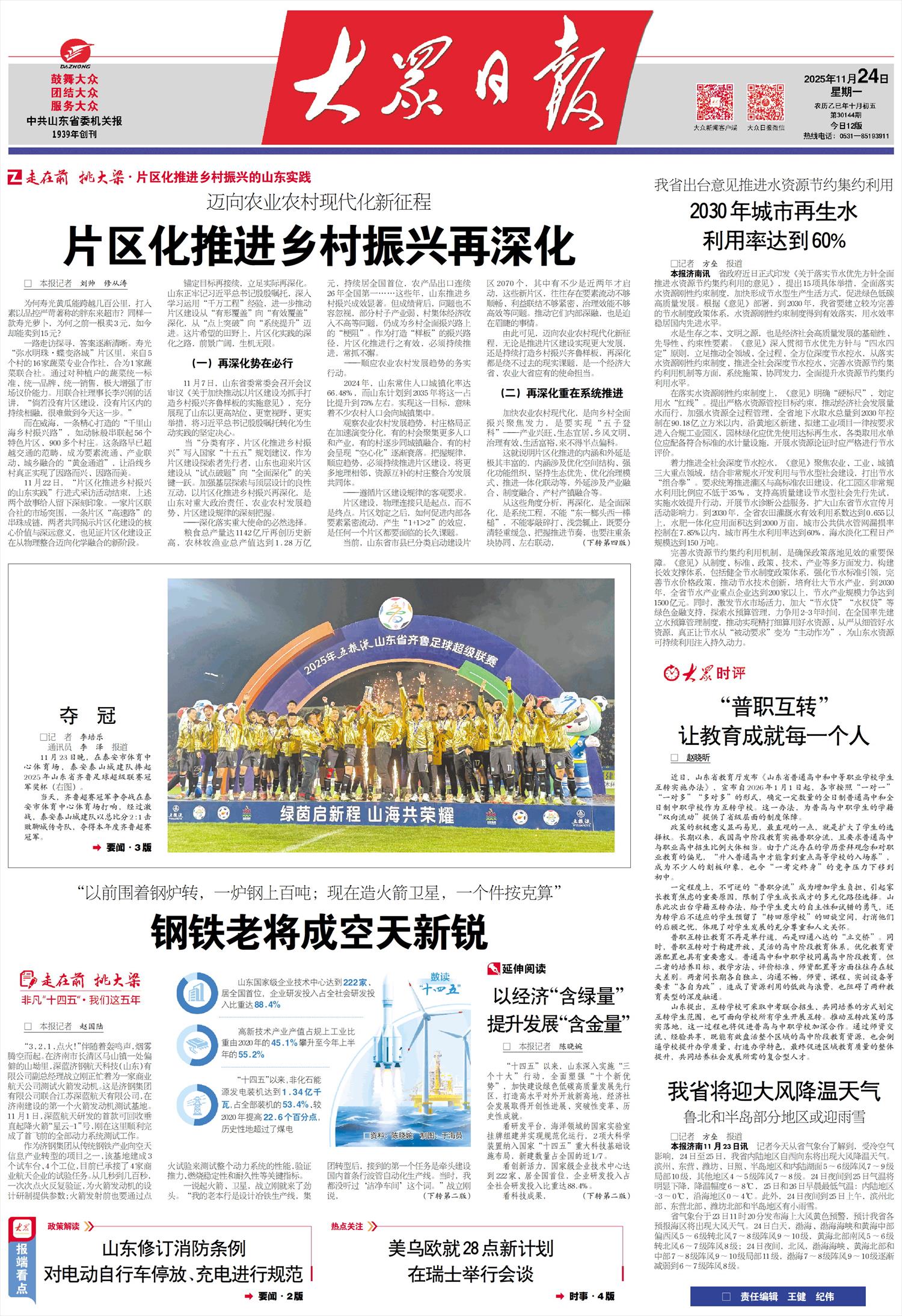 “我们不甘于做配套。”战立刚说,济钢战略转型后锚定了空天信息产业“链主”企业这个新定位。今年2月,他们的卫星AIT(总装、集成、测试)生产线获国家发改委批复,成为山东唯一的民用卫星制造项目;10月,拿到首个订单——生产两颗小卫星。
