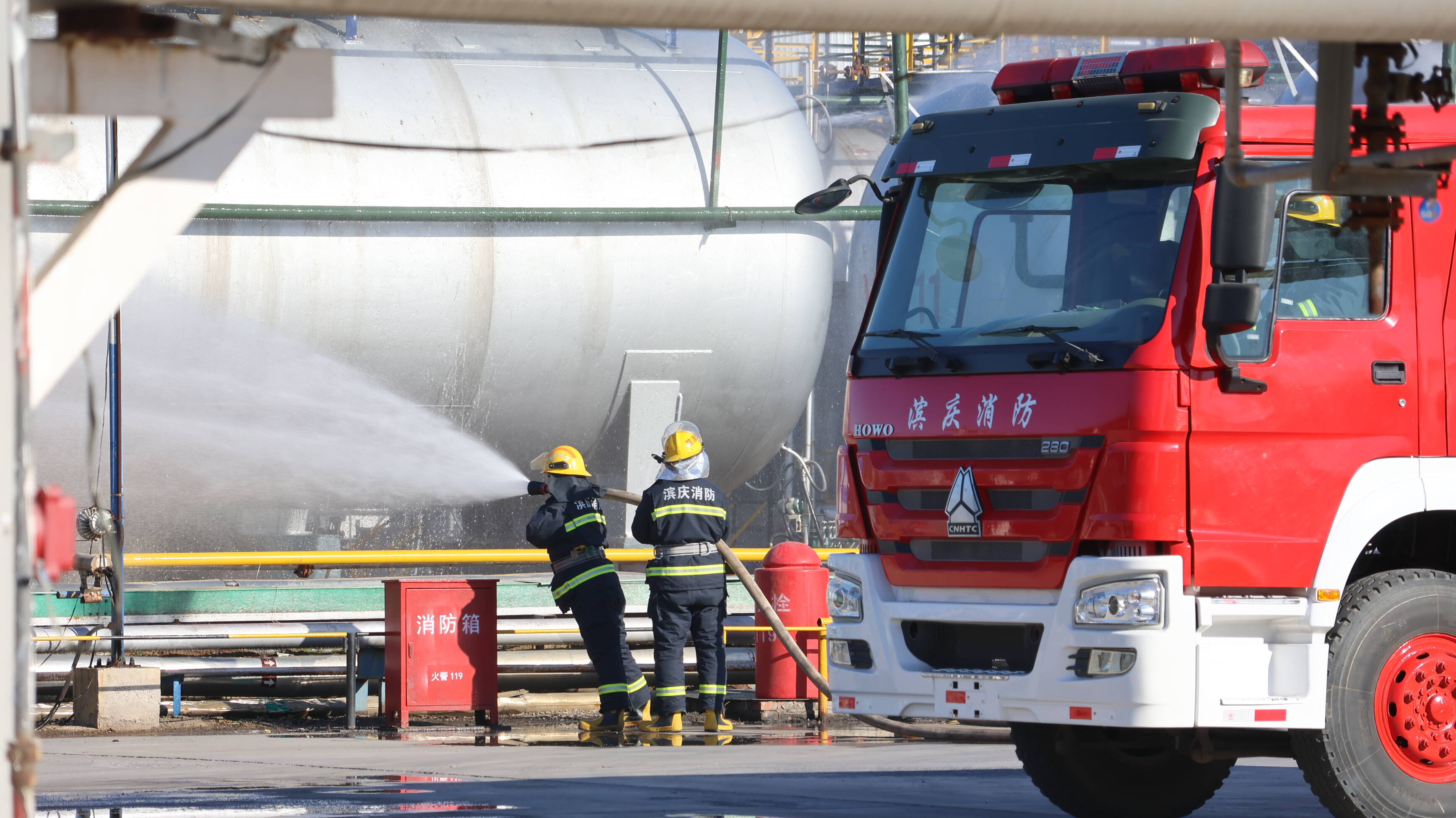 演练模拟山东滨庆新能源开发有限公司储罐区发生泄漏事故,设置了事故报告、应急启动、泄漏控制、环境监测、人员急救等8个实战科目。各部门协同作战,处置规范高效,展现了专业救援队伍的应急能力,有效增强了企业员工的安全意识。