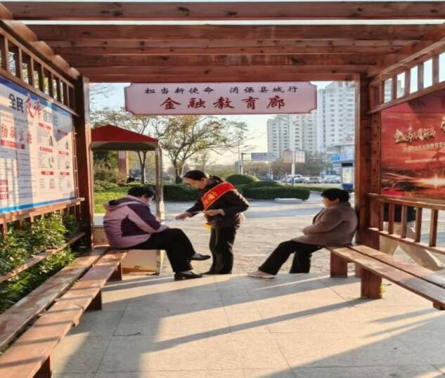 活动现场,工作人员展示宣传横幅,发放宣传资料,主动向在公园散步、休憩的老年人进行金融知识普及。
