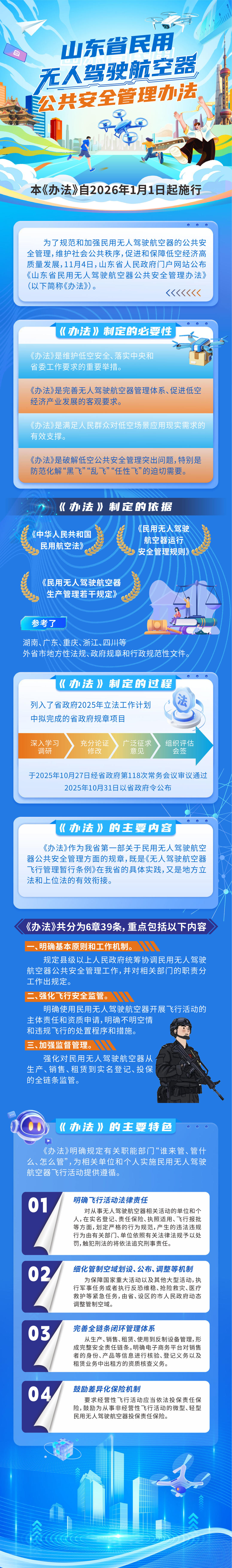 12月18日上午,山东省人民政府新闻办公室举行省政府政策例行吹风会,邀请山东省公安厅负责同志等解读《山东省民用无人驾驶航空器公共安全管理办法》,并回答记者提问。