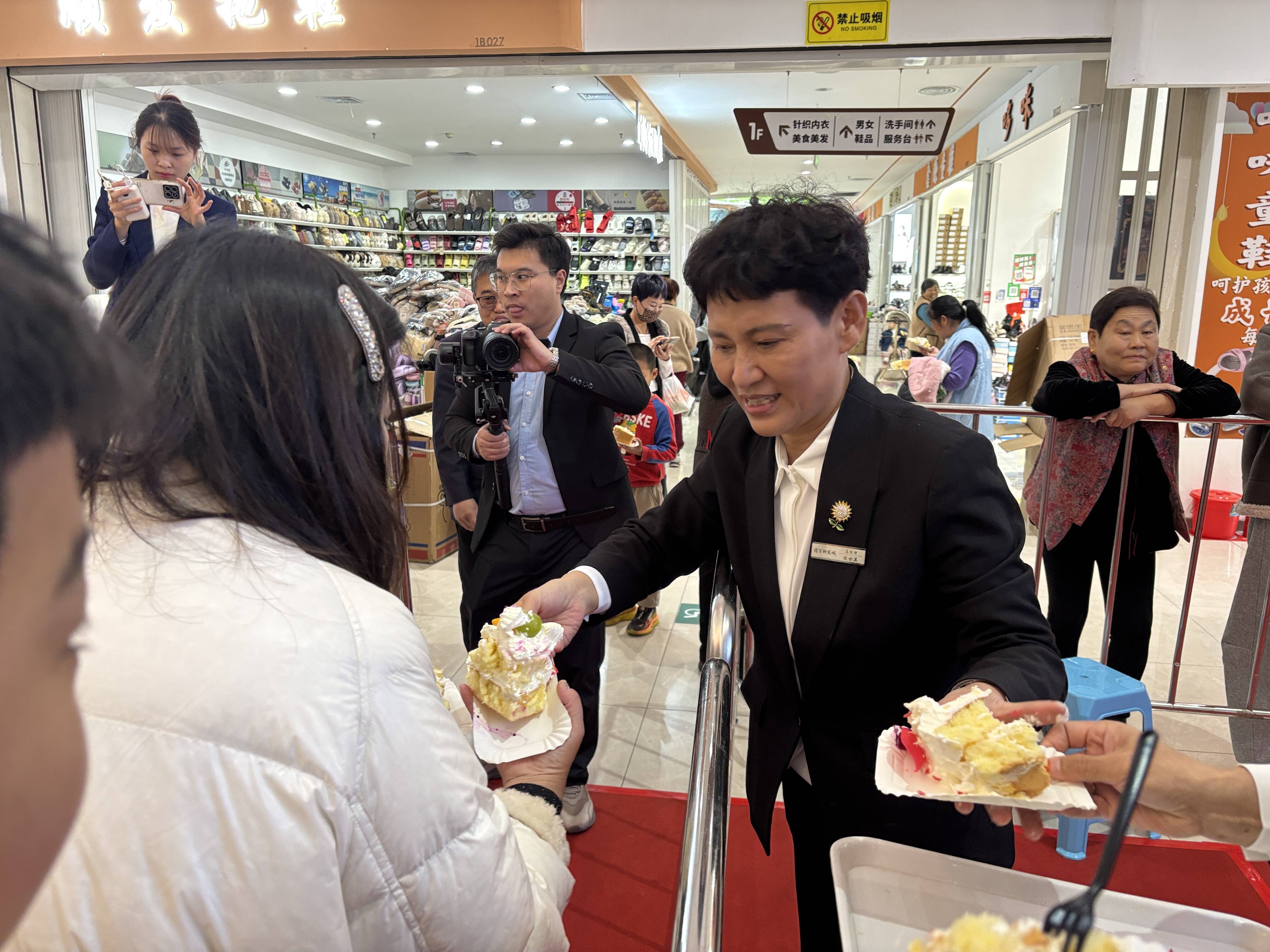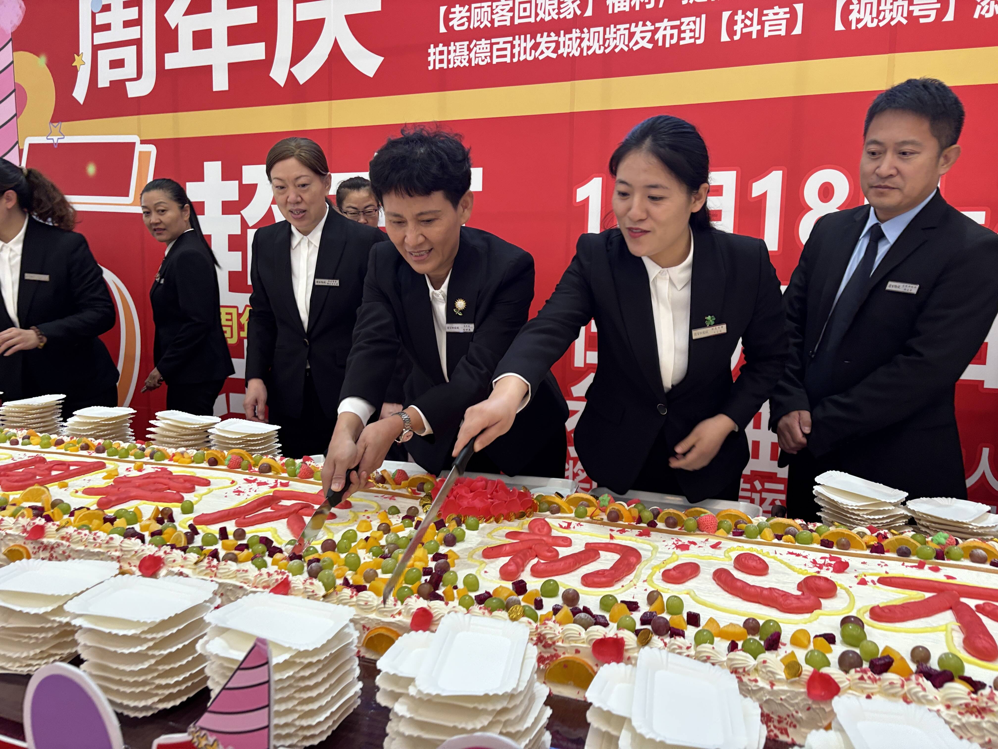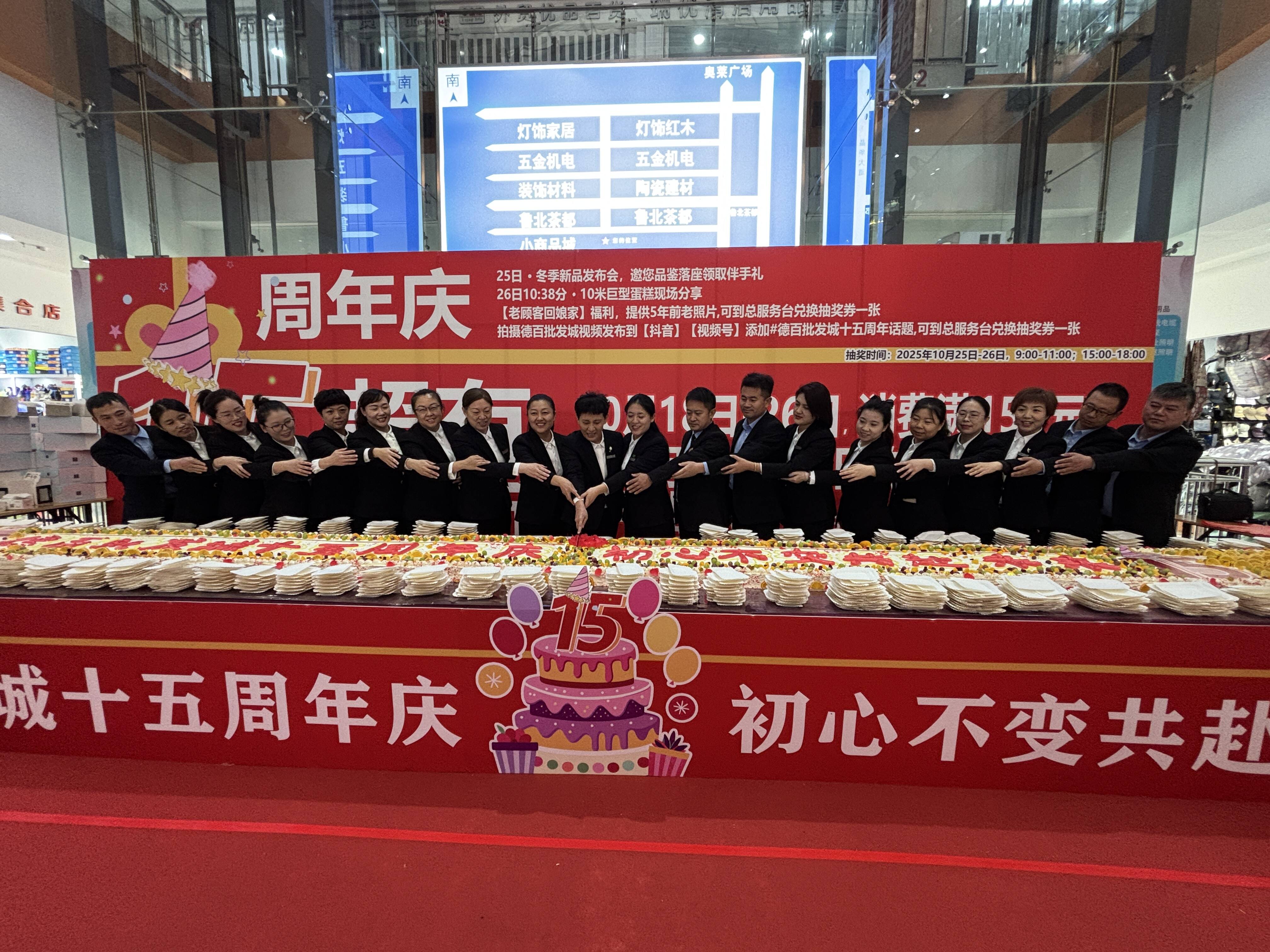 “初心不变•共赴未来”德百批发城15周年庆活动在此拉开帷幕,巨型蛋糕与顾客现场进行了分享。