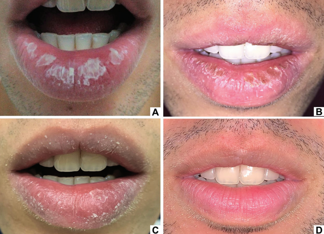 图源:科普中国 外用糖皮质激素治疗后逐步改善的剥脱性唇炎案例。 图片来自参考资料
