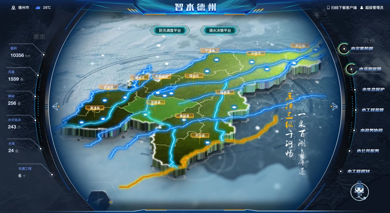 据悉,德州长期面临自然河道引调水与防洪协同难、水资源调度精准度不高等行业痛点。为破解这一难题,德州市水利局锚定国家“数字水利”战略部署,联合山东省水利勘测设计院组建专项技术团队,实现“天地空”实时信息全覆盖监测,创新集成数字孪生核心引擎、GIS+BIM全要素建模及水文水动力耦合仿真技术,构建起覆盖全市水网的智慧管控平台。