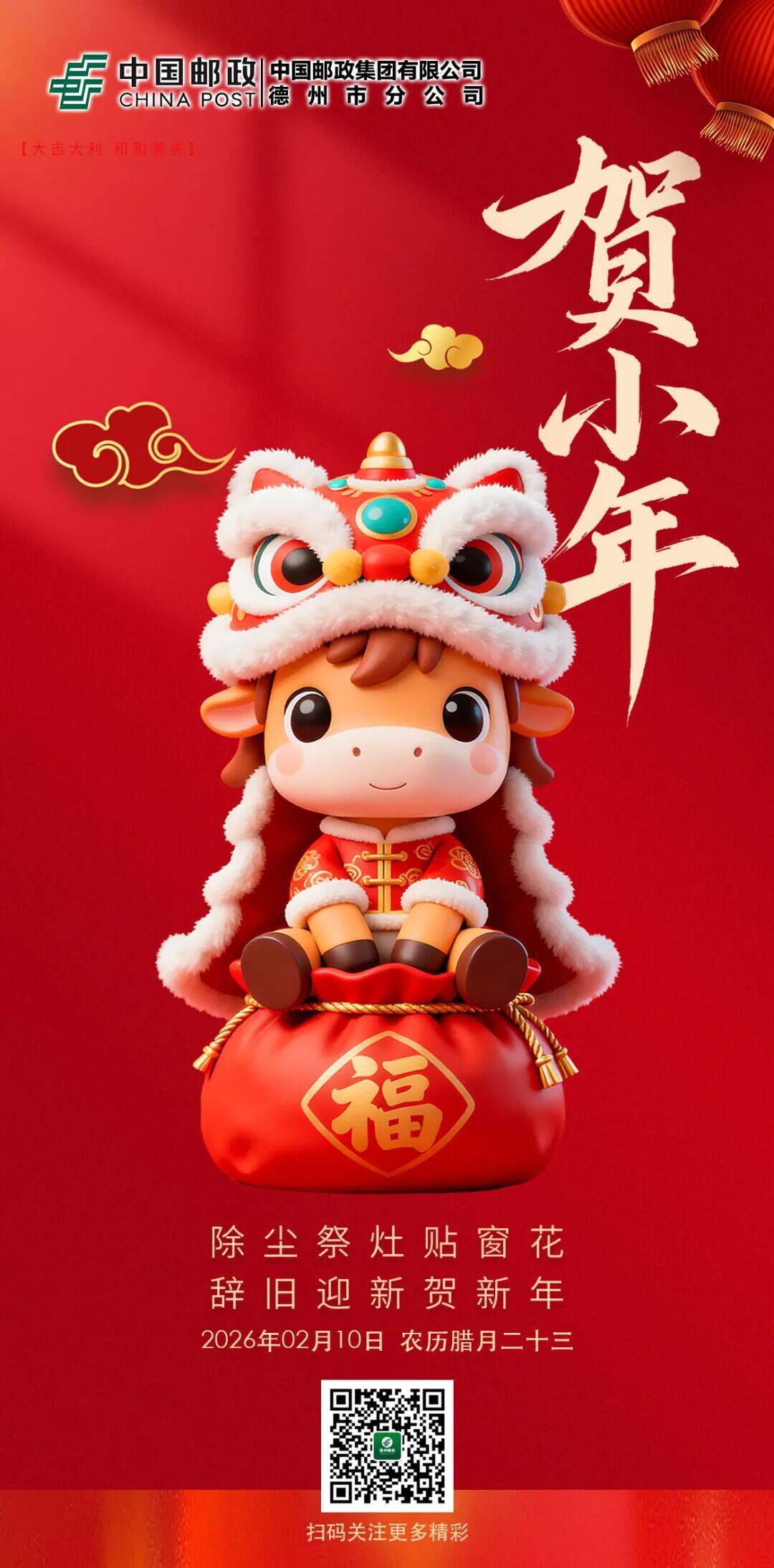 小年快乐!德州邮政,陪您一起,静待新年的钟声,奔赴更美的团圆。