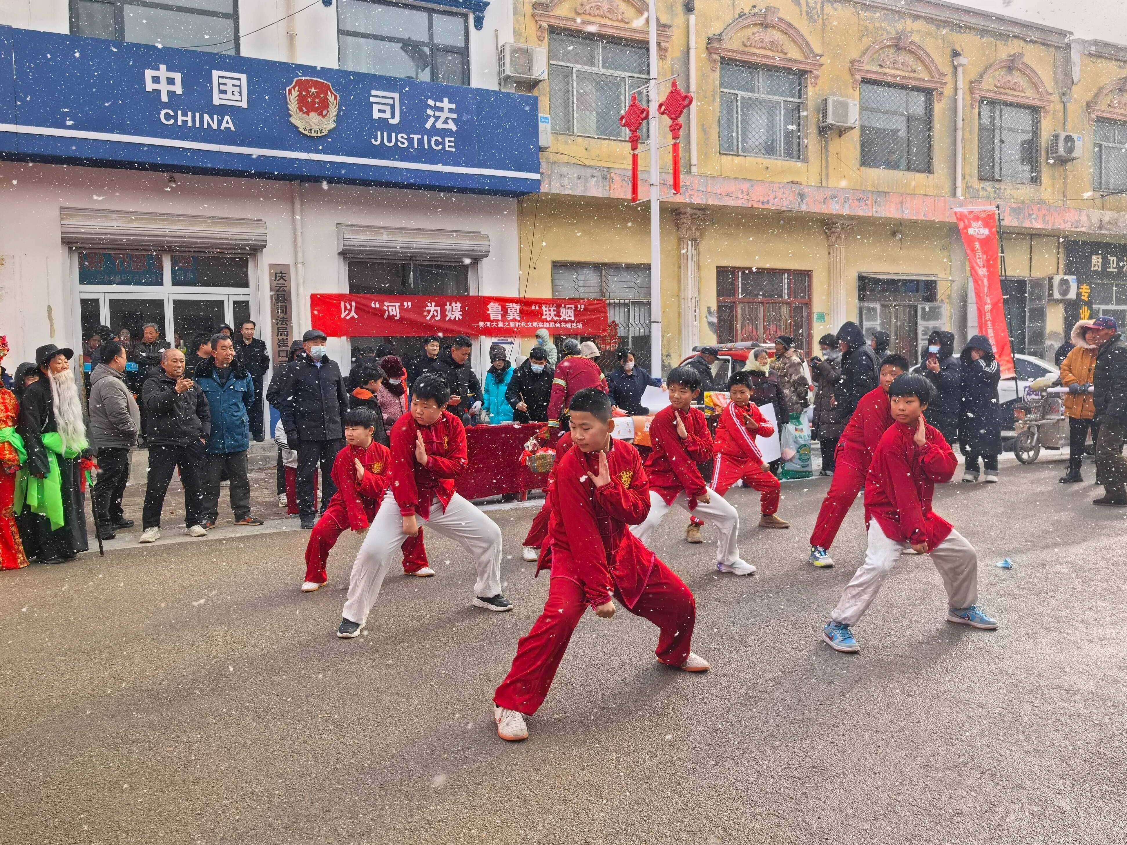 以河为媒,联结齐鲁燕赵;以集为台,唱响文明新声。近日,庆云县崔口镇年集热闹非凡,一场“以‘河’为媒 鲁冀‘联姻’”为主题的黄河大集新时代文明实践联合共建活动在此举行。活动旨在加强两省文化交流,推动新时代文明实践走向深入,为两地群众送上一份丰盛的新春文化礼包。