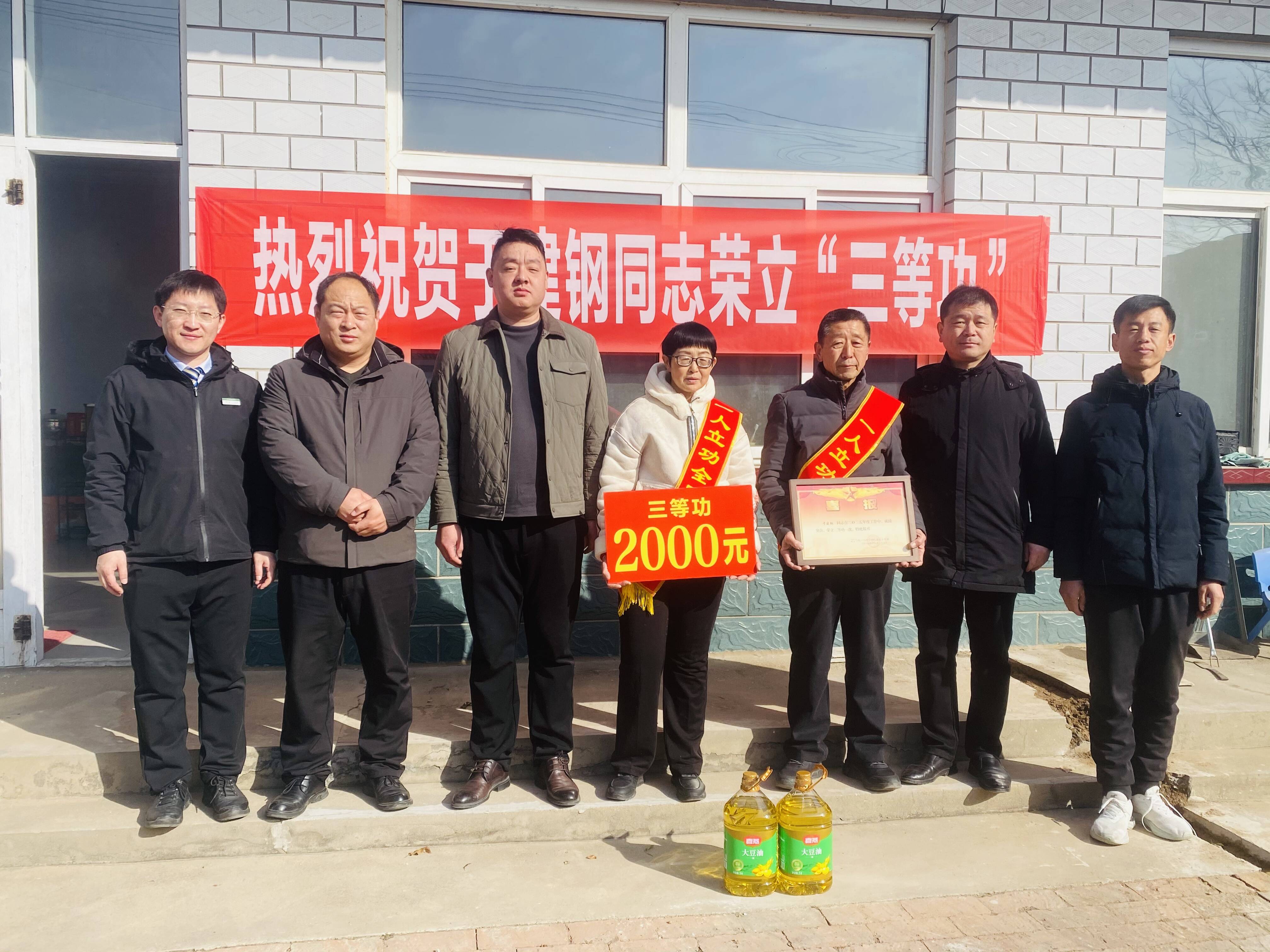 近日,庆云县退役军人事务局、邮政集团庆云分公司、东辛店镇退役军人服务站及小菅村村两委联合组成送喜报队伍,专程前往东辛店镇小菅村,为在部队荣立三等功的现役军人于建钢家庭送上立功喜报,致以热烈祝贺,以实际行动弘扬拥军优属光荣传统。