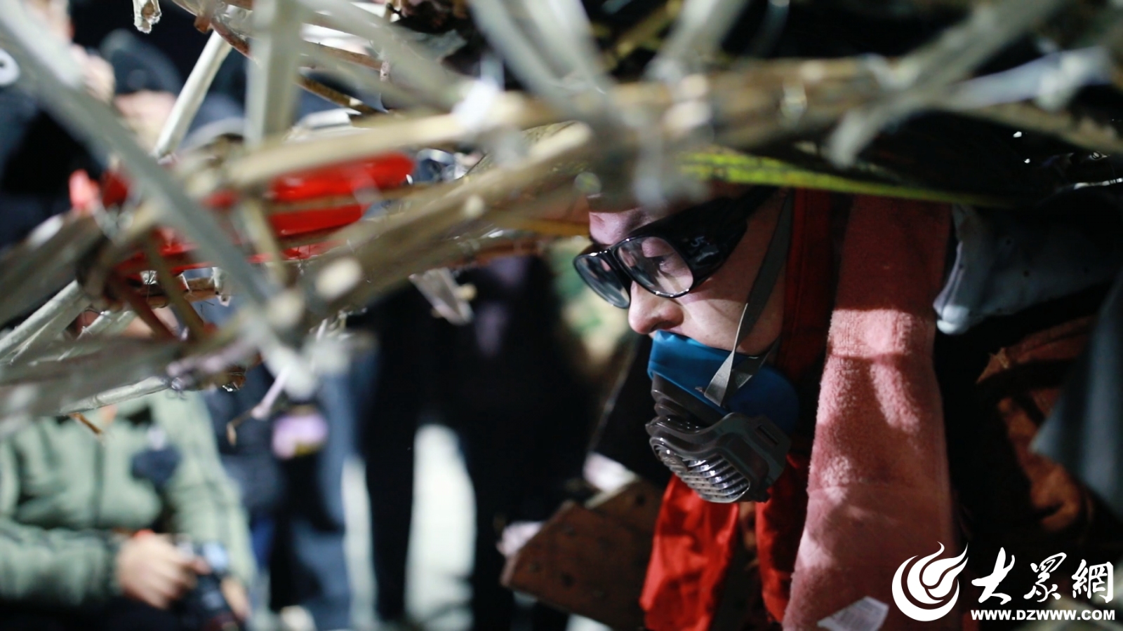 顶虎人在做演出前准备工作
