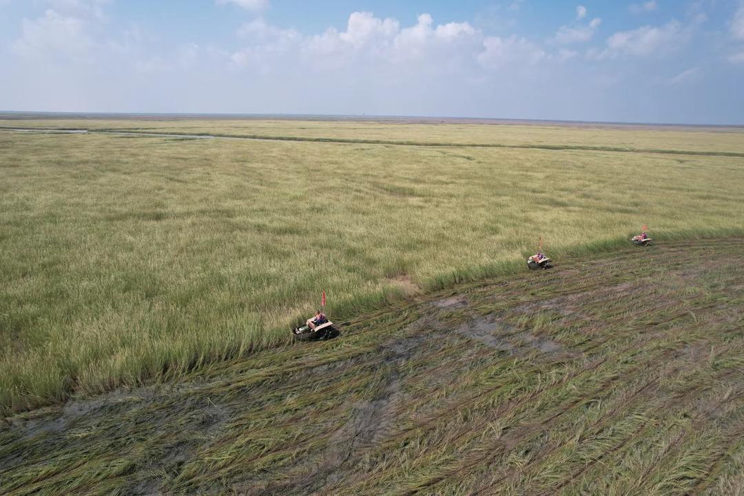2016年起,自然保护区启动互花米草专项治理,工作人员在充分研究其入侵机制、生活习性后,摸索出“刈割+围淹”“刈割+翻耕”等技术,根据不同滩涂环境对症下药。截至目前,黄河三角洲已累计治理互花米草13.1万亩,实现了现有分布区域地表植株动态清零,有效遏制了外来物种入侵,为本土植物和鸟类腾出了宝贵的生存空间。