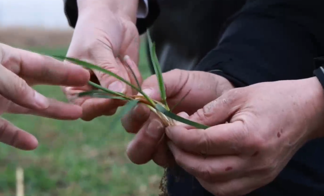 山东省农技壮苗行动小组专家田殿彬介绍:“和常年相比,弱苗的比例还是稍大一些,一二类苗大概在50%左右。今天上午走访的农户中,约有一半农户的小麦分蘖情况。当前土壤墒情比较好,特别是底墒充足,这两天又下了小雨,表墒也不错,走到地里感觉土质不松不悬,比较瓷实,保墒保温效果良好。”