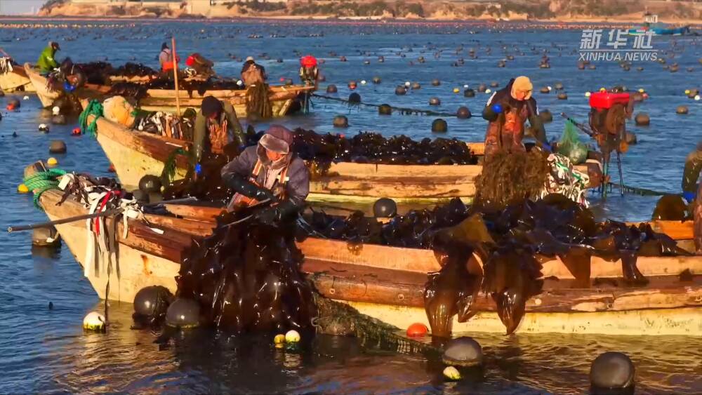 随着去年海带播种时间提前,我国海带主产区山东省荣成市海带收获作业较往年提前20多天。